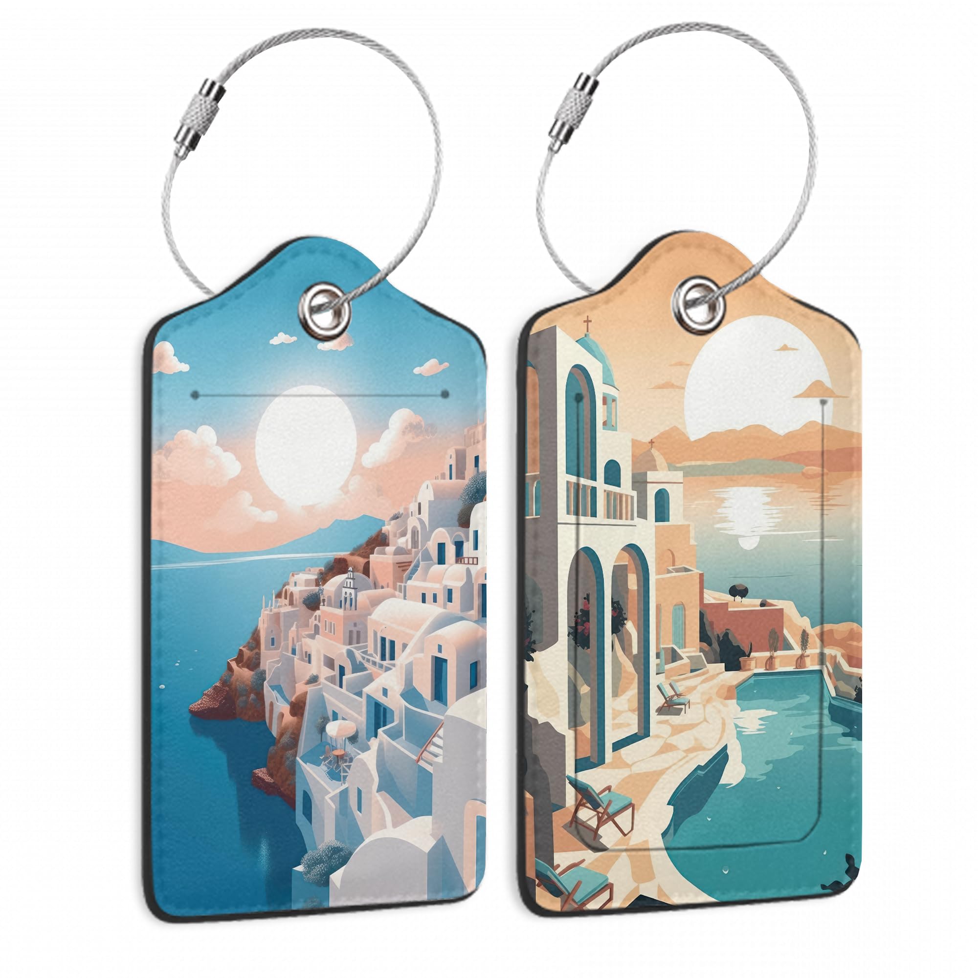 Greek Island Sunset Landscape On The Sea Luggage Tags for Suitcases, 2 Pack Cute PU Leather Suitcase Tag Identifiers with Address Card for Baggage Tag|Luggage & Bags