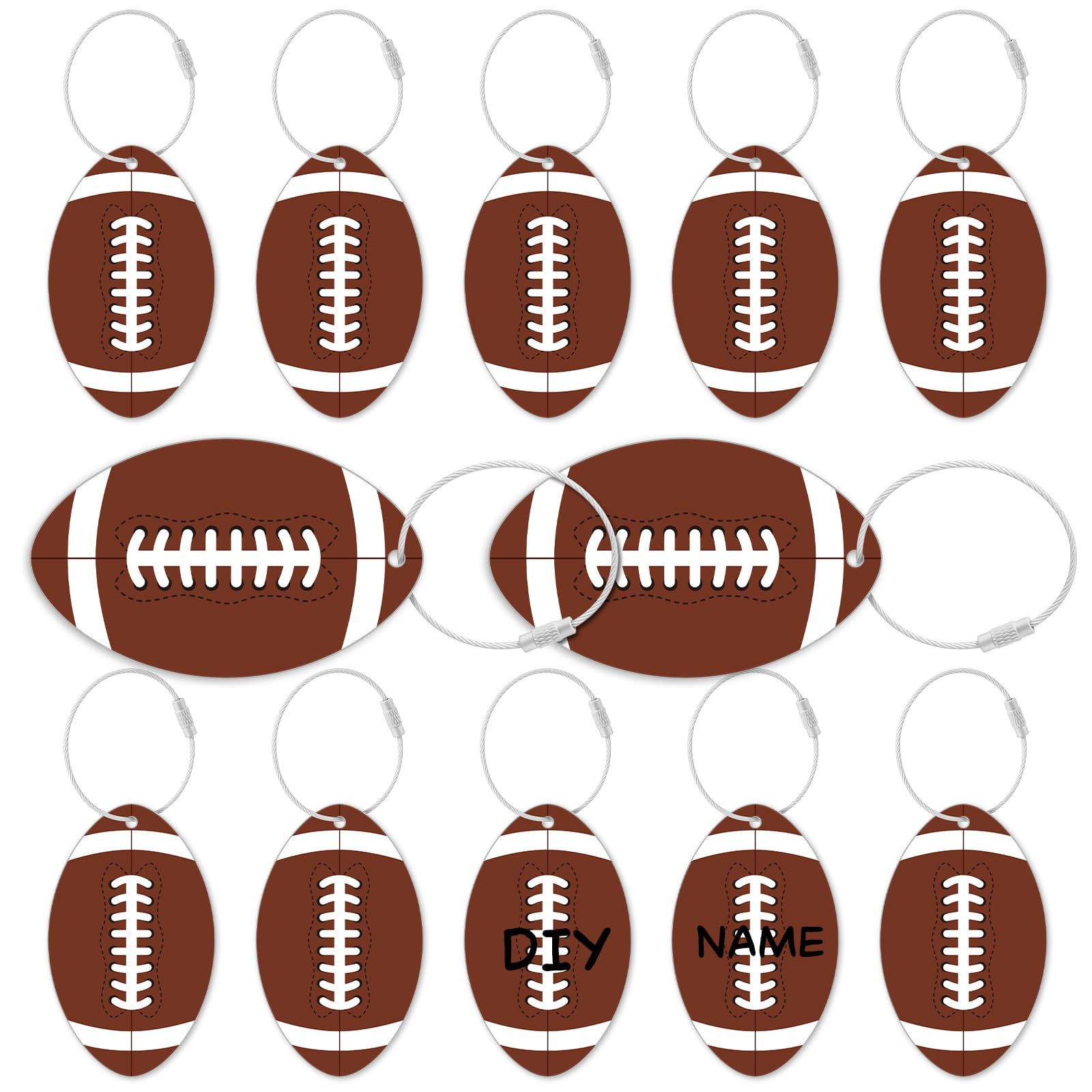 12 Pcs Football Luggage Tags for Suitcases Travel Suitcase Labels with Metal Ring 2.75in Football Keychain,Football Accessories PVC Name Id and DIY|Luggage & Bags