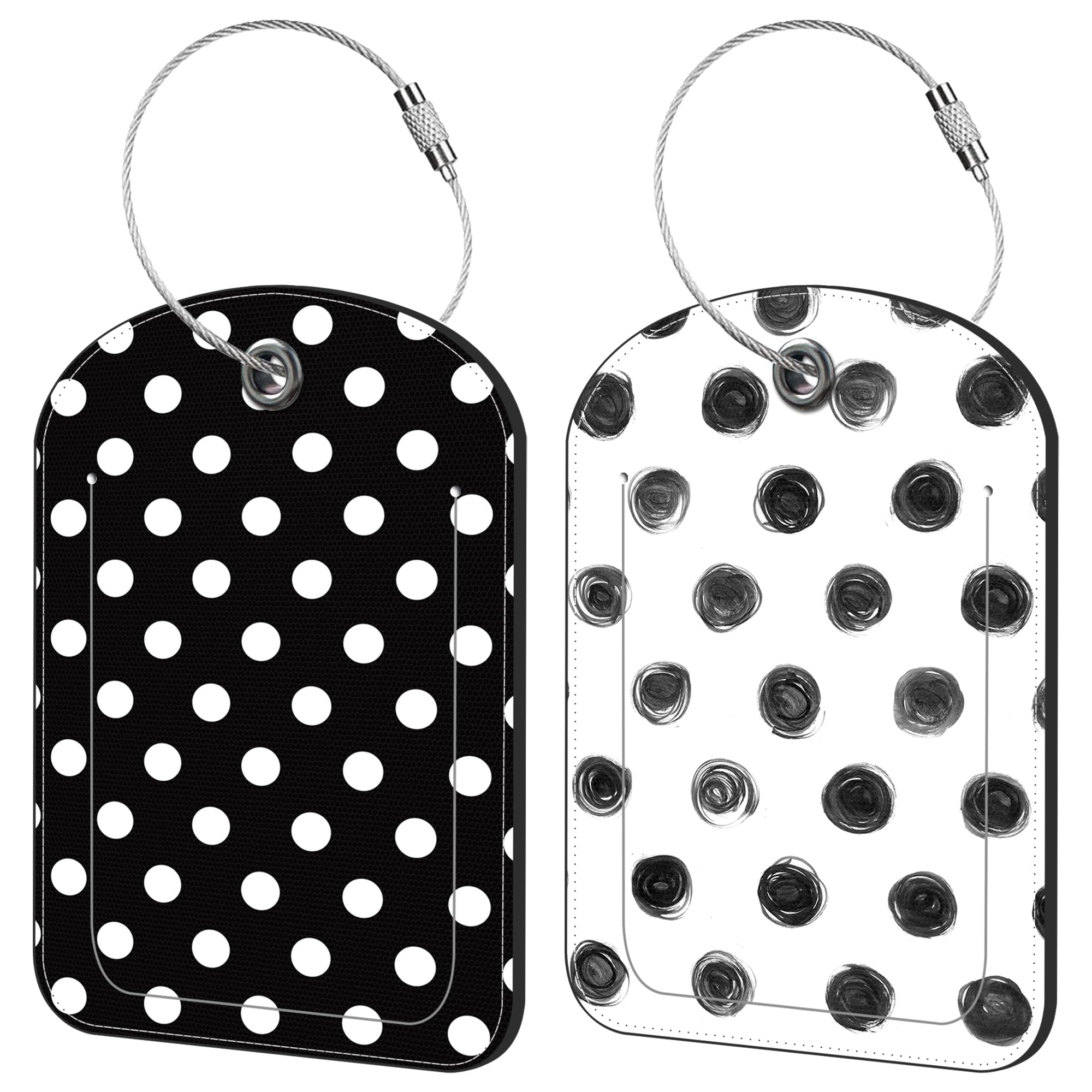 iapodiad Black White Polka Dots Luggage Tag for Suitcase Set of 2 PU Leather Cute Luggage Tags with Stainless Metal Loop ID Label Privacy Flap|Luggage & Bags