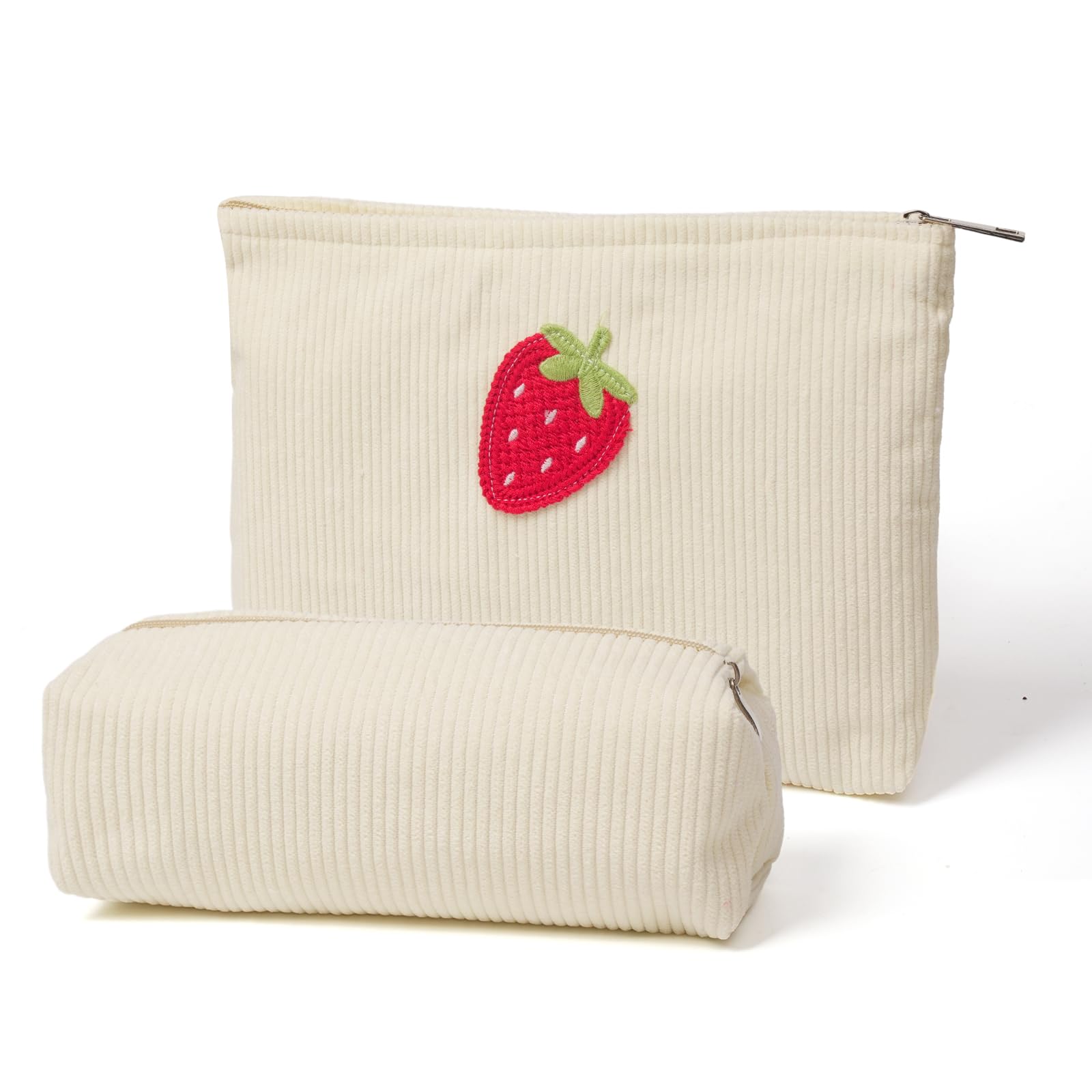 FASHLANLIKA Cosmetic Bags Cute Strawberry Patch Corduroy Makeup Bag Set Large Travel Toiletry Cosmetic Pouch Bags with Zipper for Women (Beige)|Luggage & Bags
