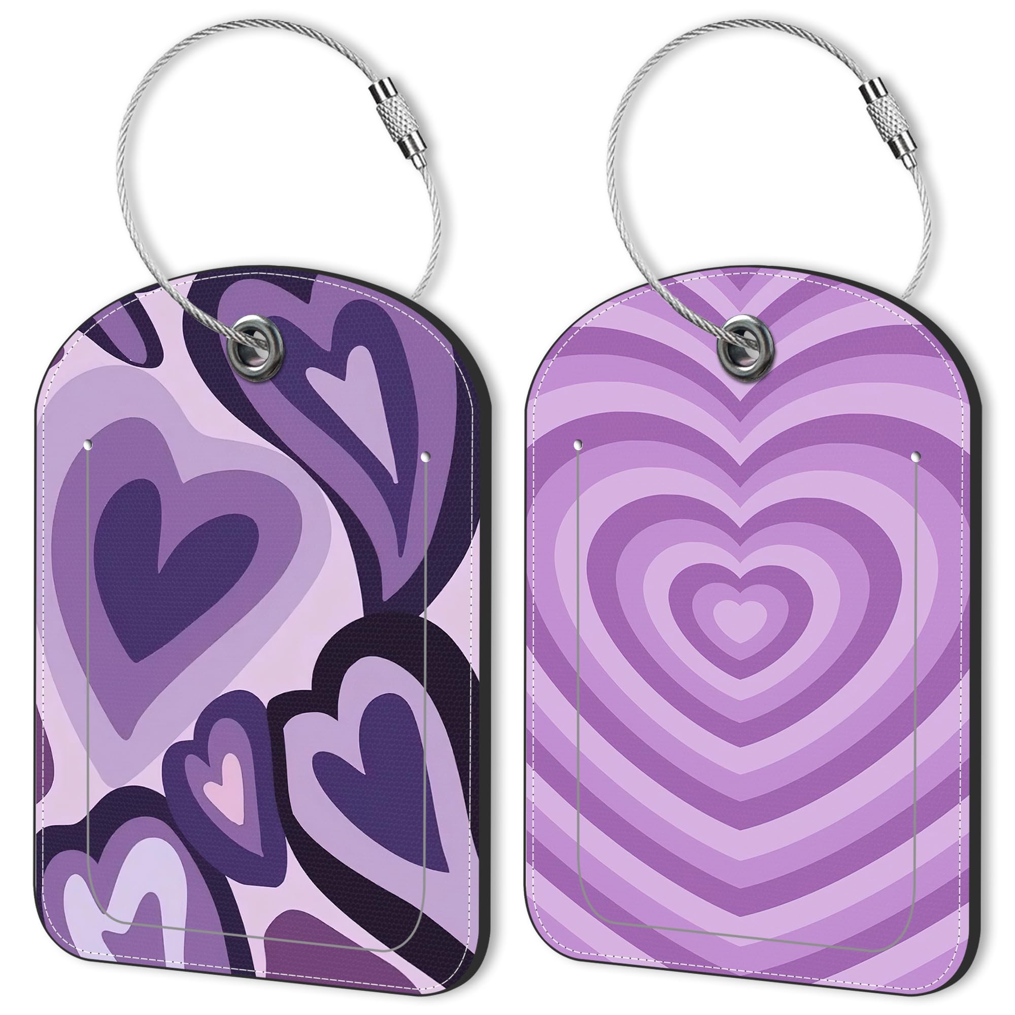 Purple Heart Leather Luggage Tag for Suitcase 2 Pack Luggage Tag with Privacy Name ID Label and Stainless Steel Loop for Travel Bag Suitcase|Luggage & Bags