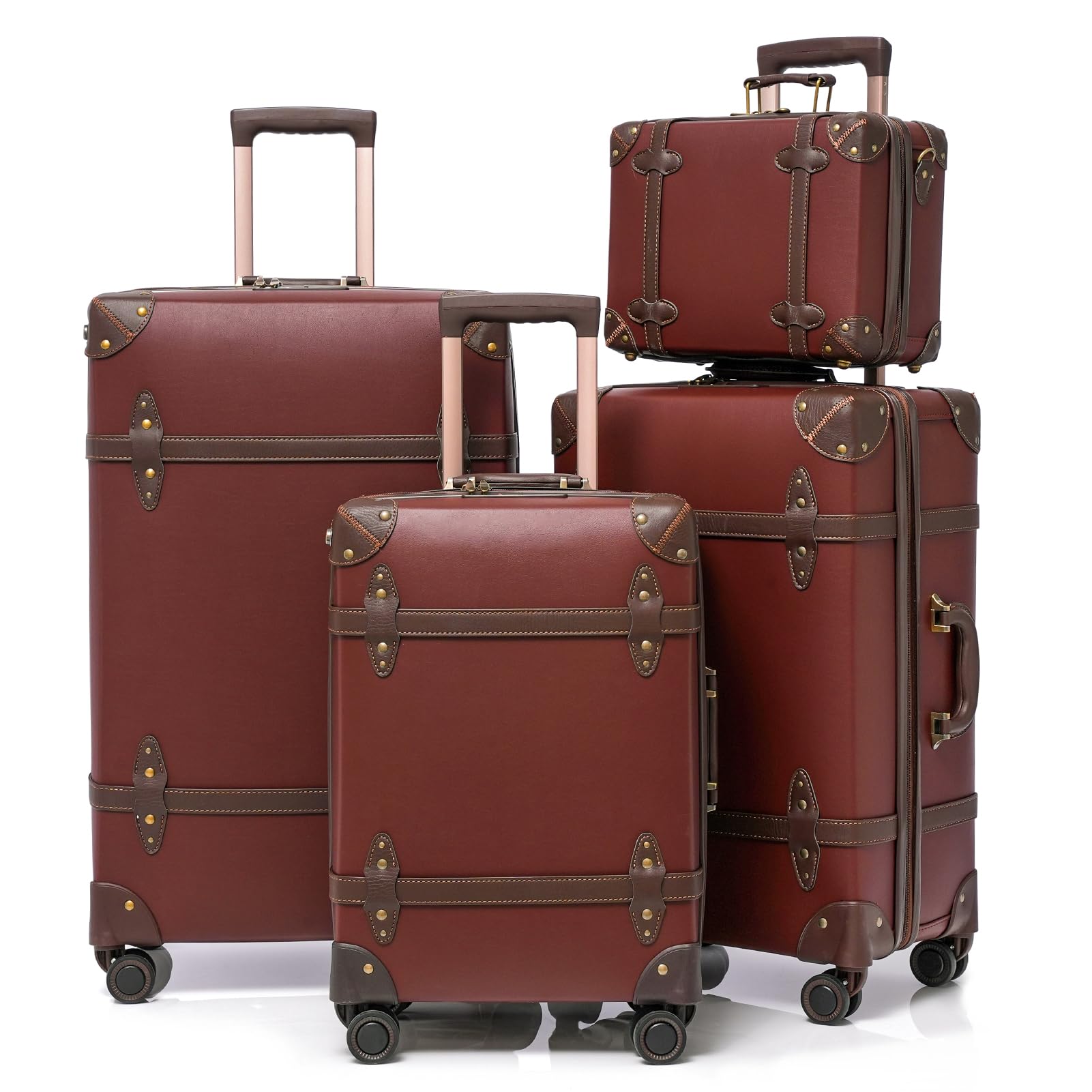 NZBZ Vintage Luggage Sets for Women, PU Leather Retro Suitcase, Vintage Trunk Luggage, Vintage Suitcase Set (Caramel Brown, 4-Piece-Set(14/20/24/28))|Luggage & Bags