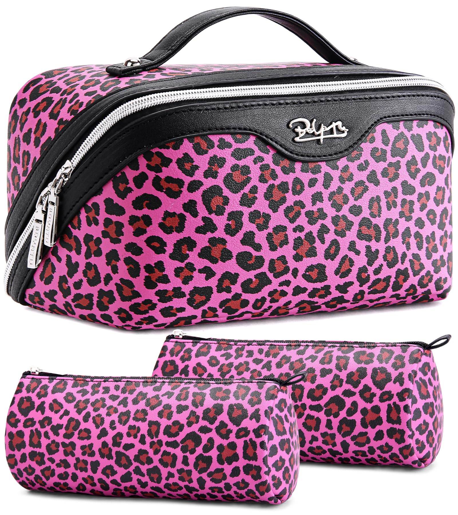 BOYATU Travel Makeup Bag for Women: 3 Pcs Set Portable Make up Bags with Handle - Leopard Print Cosmetic Bags with Comparments - Waterproof Vegan|Luggage & Bags