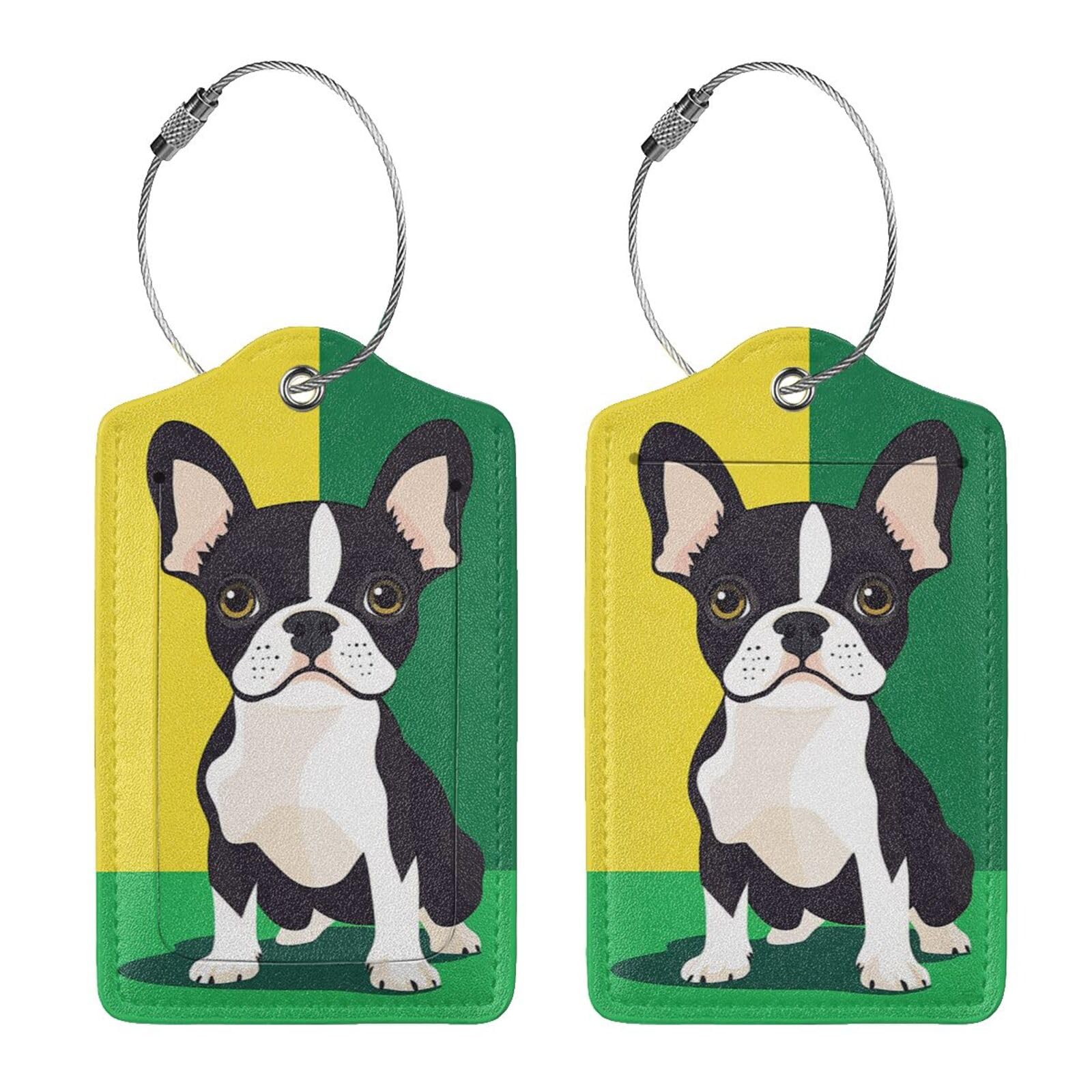 Buyidec 2 Pack Cute Boston Terrier Luggage Tags for Suitcases, Leather Baggage Tag with Loop, Funny Cool Name Id Card Cover Travel Bag Labels Set for|Luggage & Bags