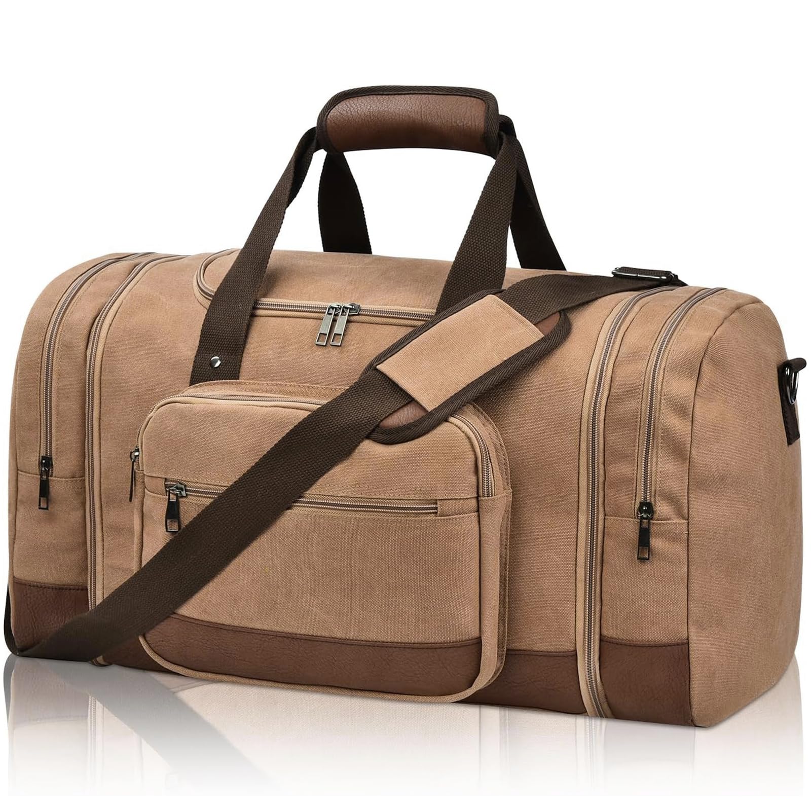 Litvyak Duffle Bag for Travel, 50L Canvas Travel Duffel Bags Overnight Weekend Gym Carry On Luggage Bag for Men & Women(Coffee)|Luggage & Bags