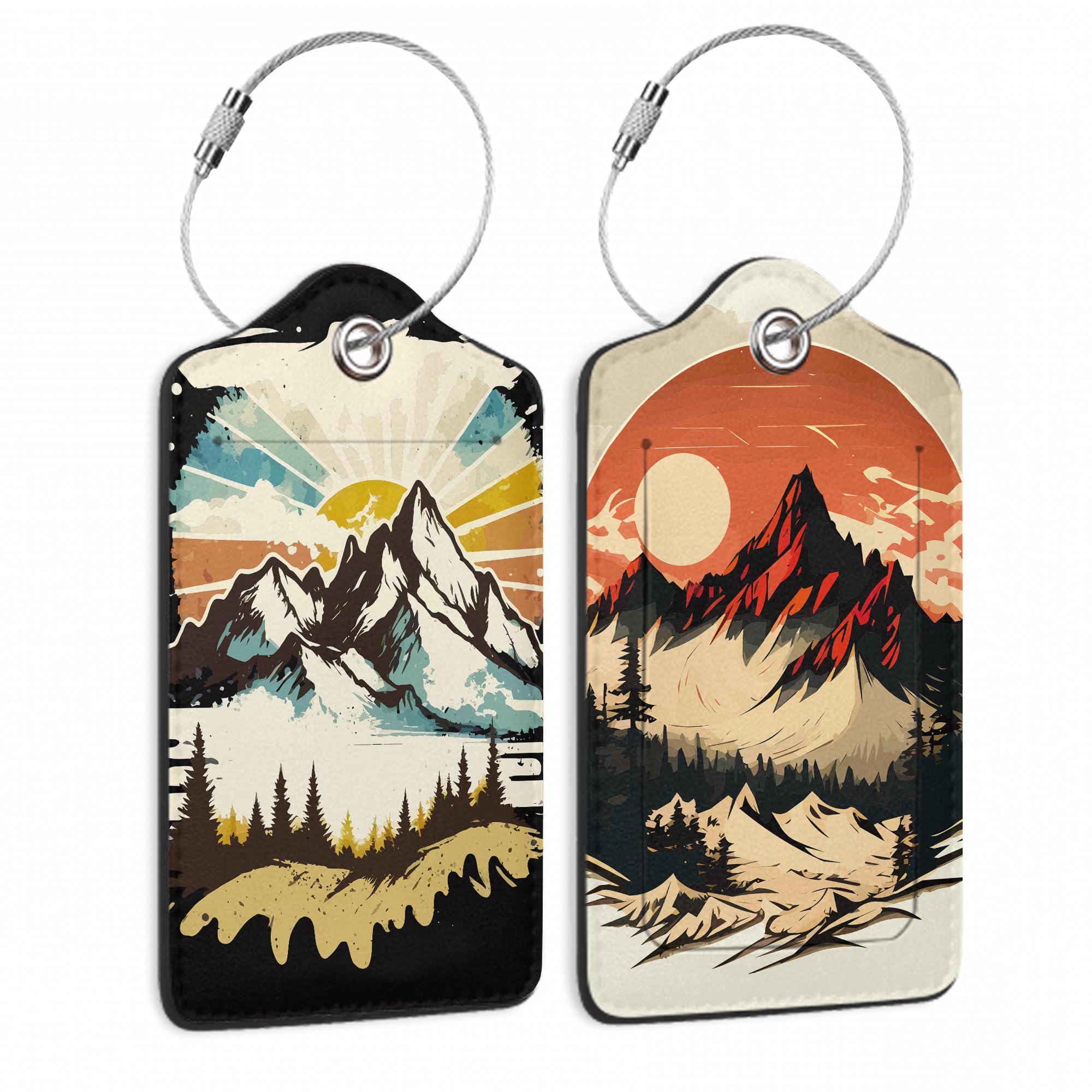 2 Pack Leather Luggage Tag for Suitcase Vintage Sunset Mountain Unique Travel Tags with Privacy Cover ID Label & Stainless Steel Loop for Men and|Luggage & Bags