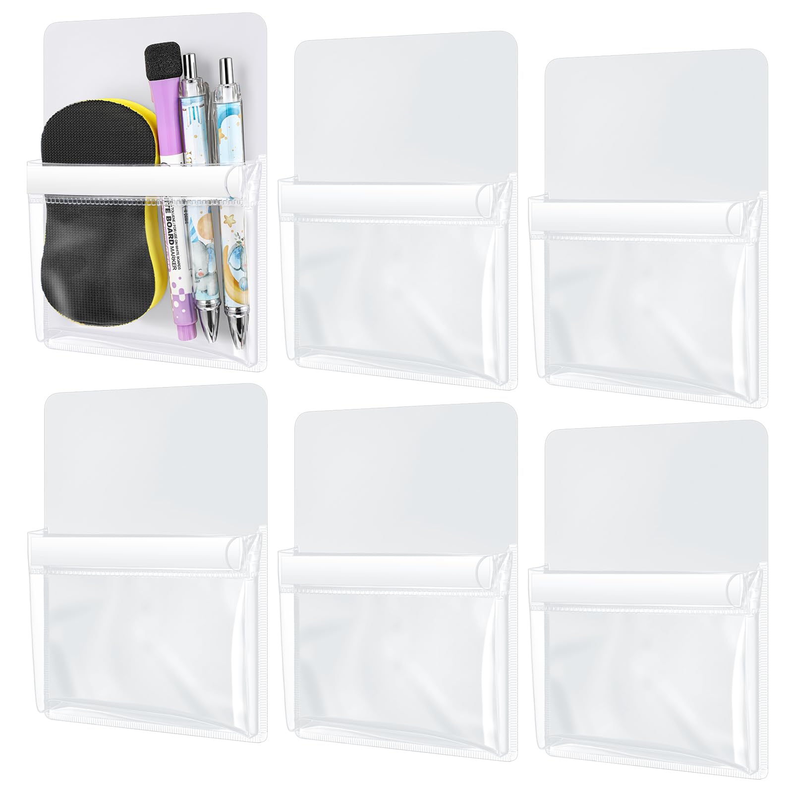 Sherr 6 Pcs Magnetic Pockets Pen Marker Holders, Whiteboard Magnetic Pouches 4.7 x 6.5 Clear File Holder for Fridge Locker Classroom, Dry Erase Marker|Office Supplies