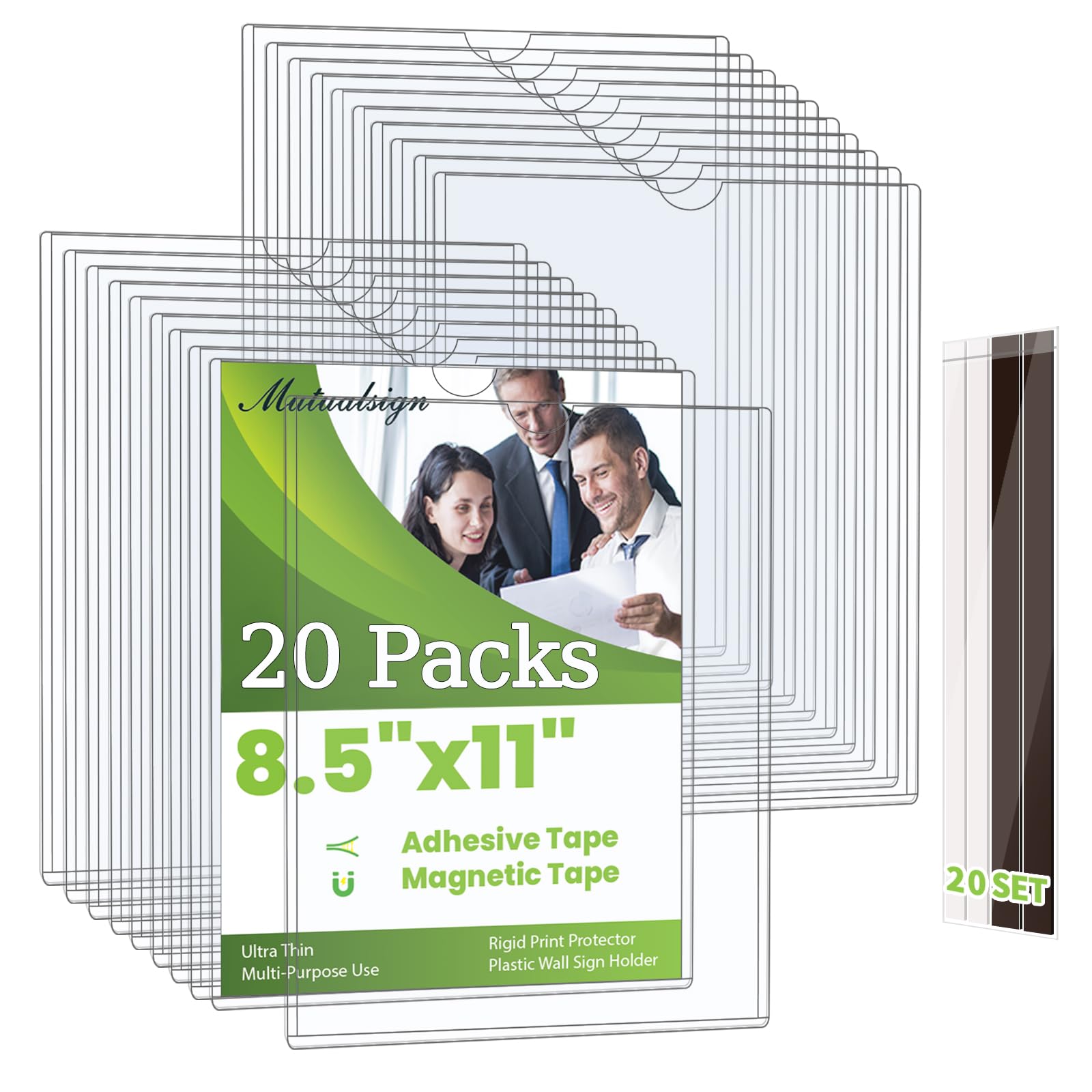 Mutualsign 20 Pcs Wall Sign Holder 8.5"x11" Magnetic Sign Holder, Rigid Print Protectors with Adhesive & Magnetic Tapes, Wall Mount Plastic Paper|Office Supplies