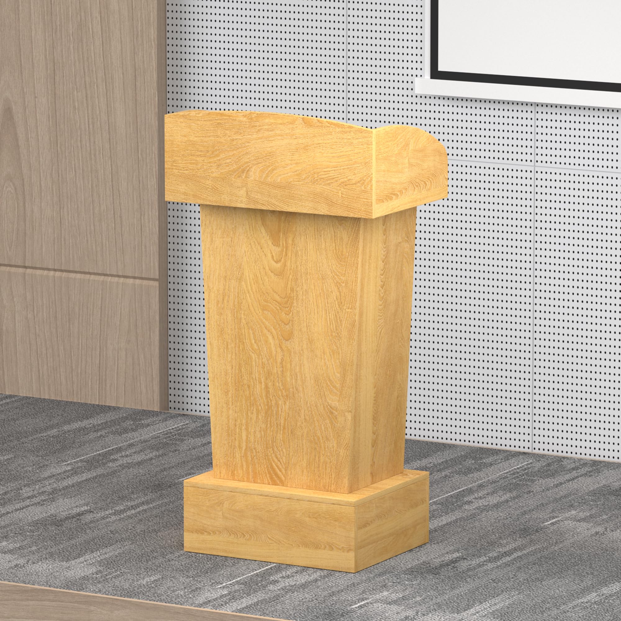 Xibolai Wooden Podium Stand Lectern Oak Color 16MM Wood Board Elegant Design with Storage Wooden Pulpit for Restaurants Churches Seminars and Schools|Office Supplies