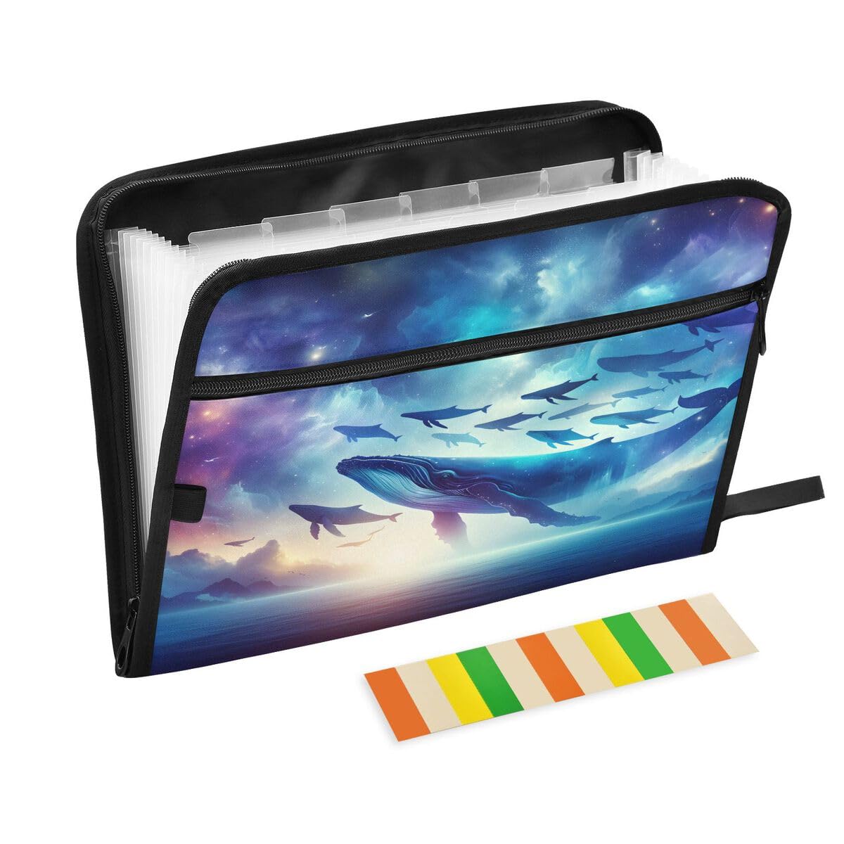 ALAZA Whale Magic Sky Expandable Filing Folder Storage Organiser Box Files, 13 Pockets Zip Filing Folders for Home or Office Documents|Office Supplies