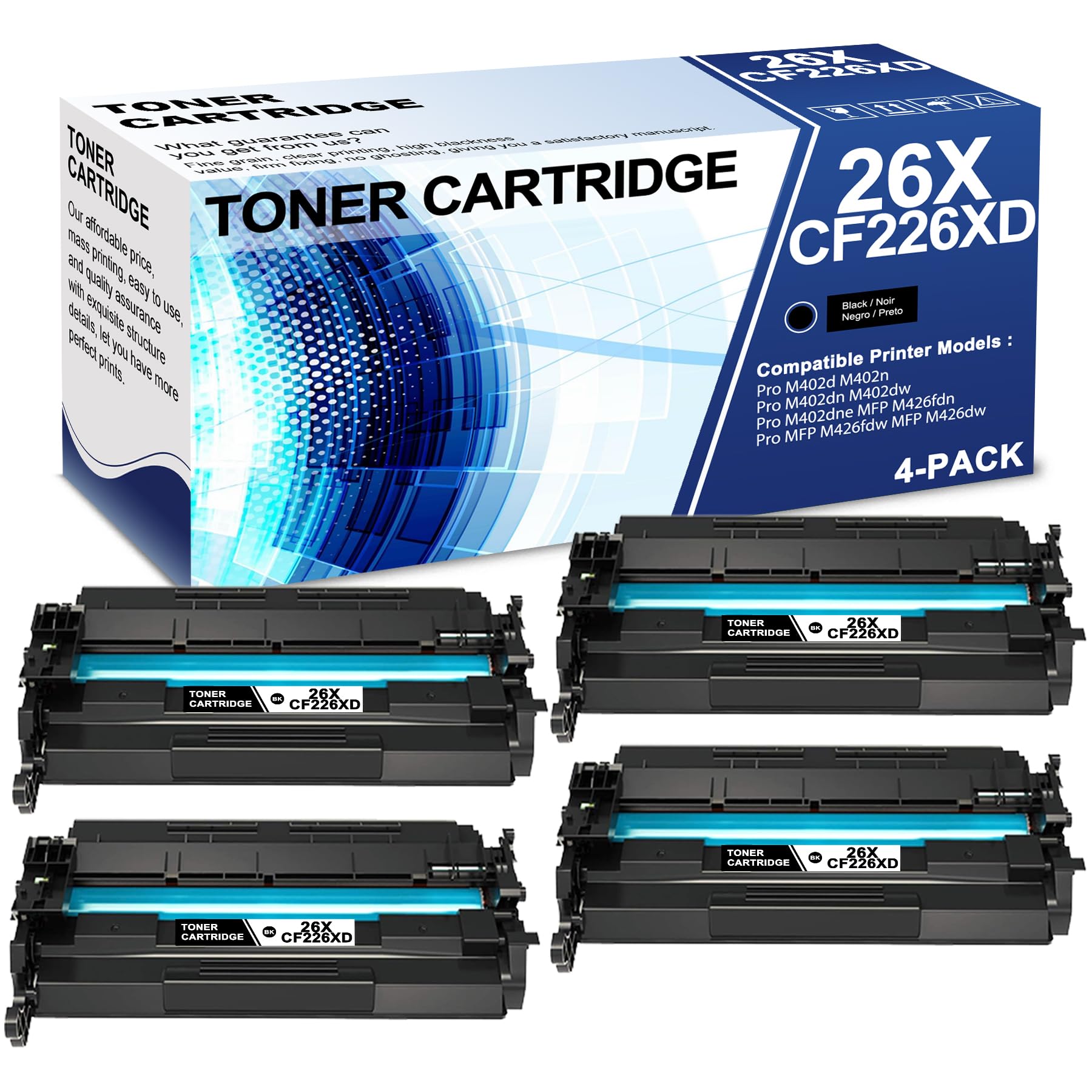 4 Pack 26X CF226XD Black Toner Cartridge with Chip 26X CF226XD Compatible CF226X Replacement for HP Pro M402d M402n M402dn M402dw M402dne MFP M426fdn|Office Supplies