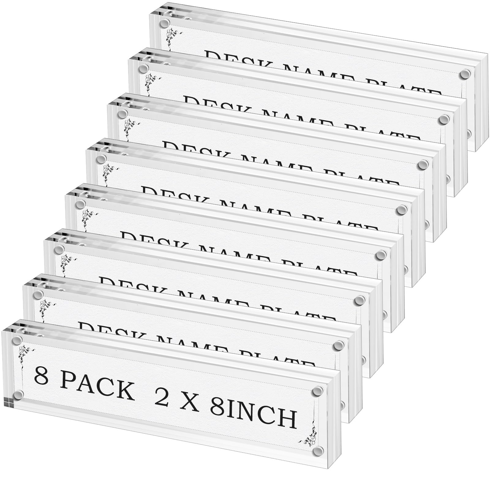 Geetery 8 Pcs Acrylic Office Desk Name Plate Personalized Clear Acrylic Block Double Sided Table Name Plate Holder Business Magnet Frame DIY Desktop|Office Supplies