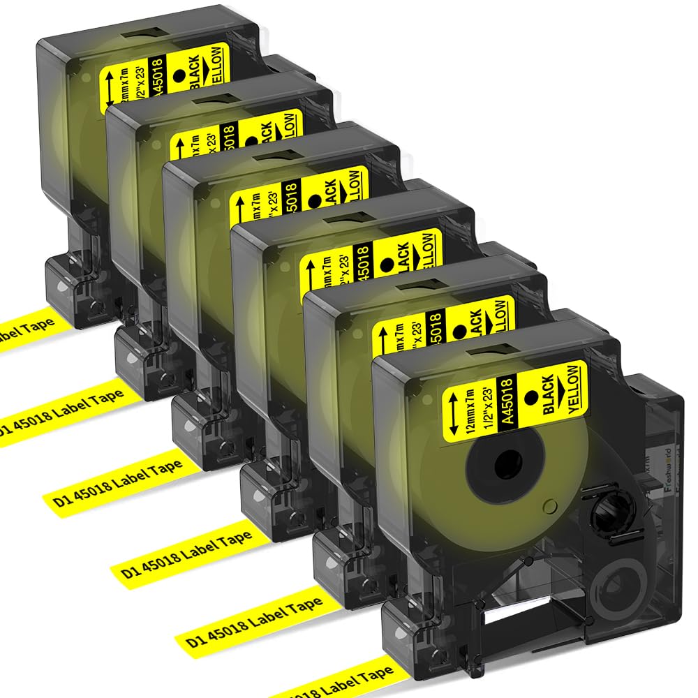 Freshworld Compatible with Dymo D1 Label Tape 45018 Replace for Dymo Label Maker Refills d1, Black on Yellow, 1/2 in x 23 Ft, for LabelManager 160|Office Supplies