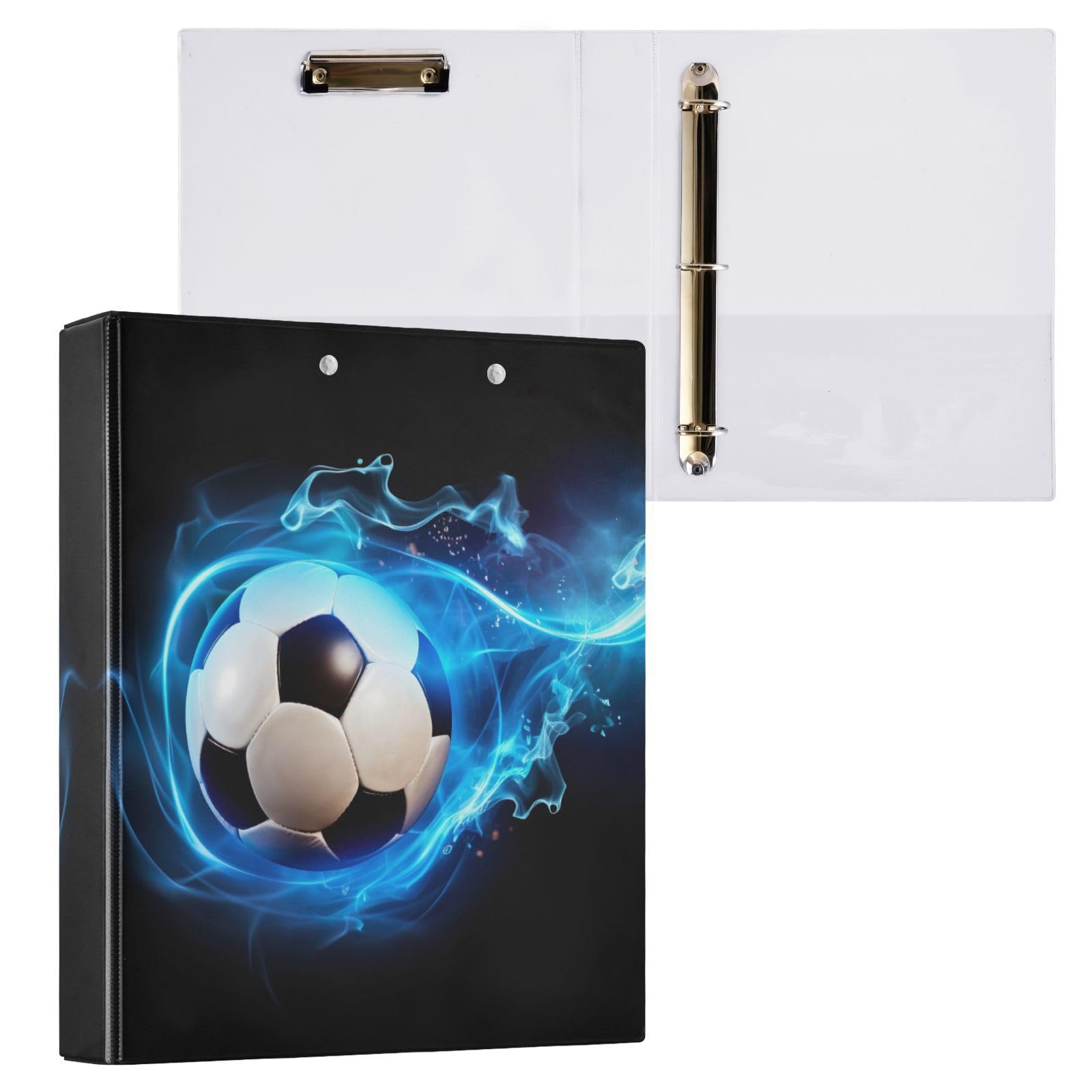 SPRIPORT Soccer Ball Dark 1.5 Inch 3 Ring Binder Holds 200 Sheets for Office Supplies Durable PVC Round Ring Binder with Interior Clear Pockets|Office Supplies