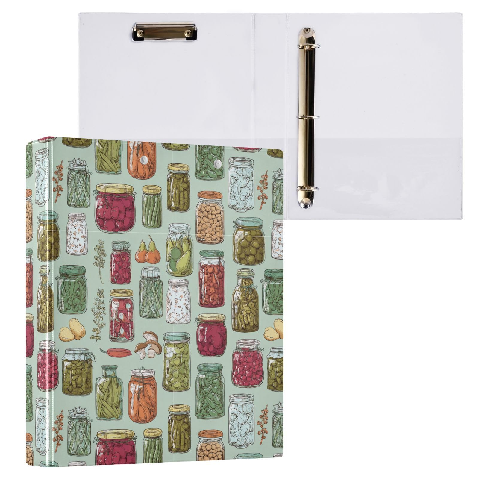 Aslsiy Pickle Jars Fruits Vegetables 3 Ring Binder 1.5 Inch Round Clipboard Binder Decorative Harcover Binders Organizer for Office Supplies|Office Supplies