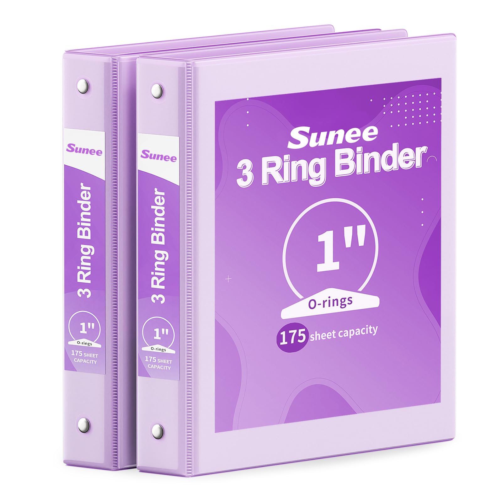 SUNEE 3 Ring Binder 1 Inch 2 Pack, Clear View Binder Three Ring PVC-Free (Fit 8.5x11 Inches) for School or Office Supplies, Purple|Office Supplies
