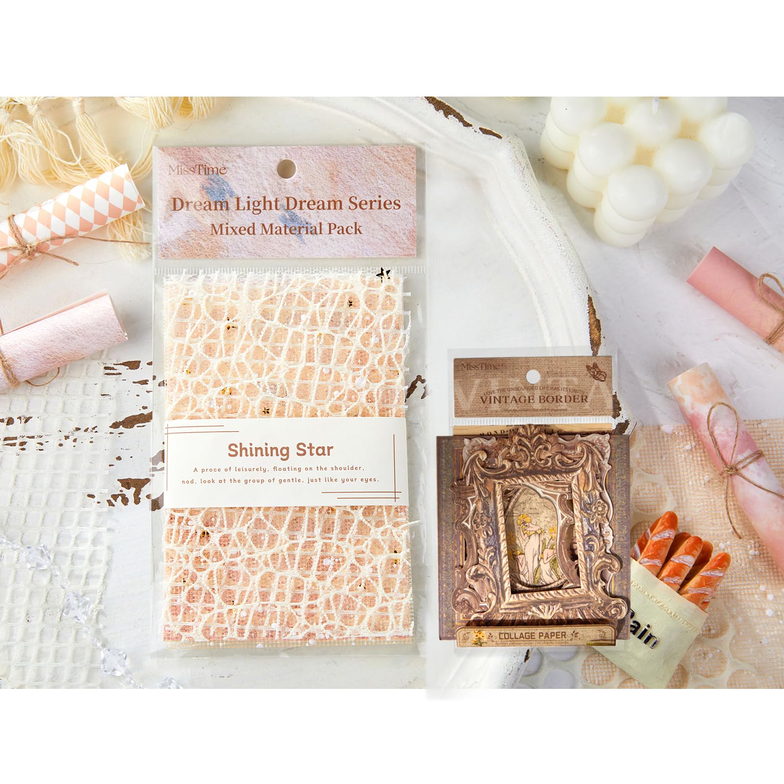 Gryast 25 pcs Textured Scrapbook supplies - Mesh Fabric junk journal Paper Decorative Mixed Set and Background Window Frames Decoration Paper for DIY|Office Supplies