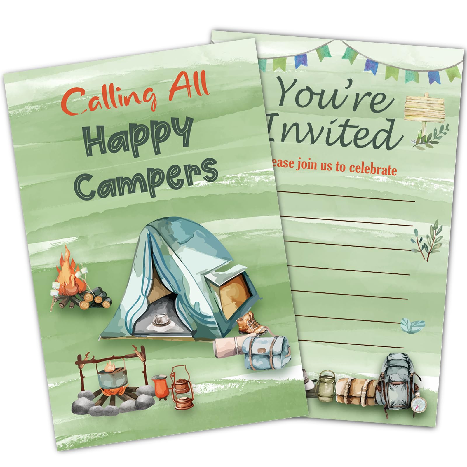Uniizone Camping Theme Birthday Party Invitation Cards With Envelopes, Party Invitations for Boys Girls Teens Campers, 30PCS Double Sided Bonfire|Office Supplies