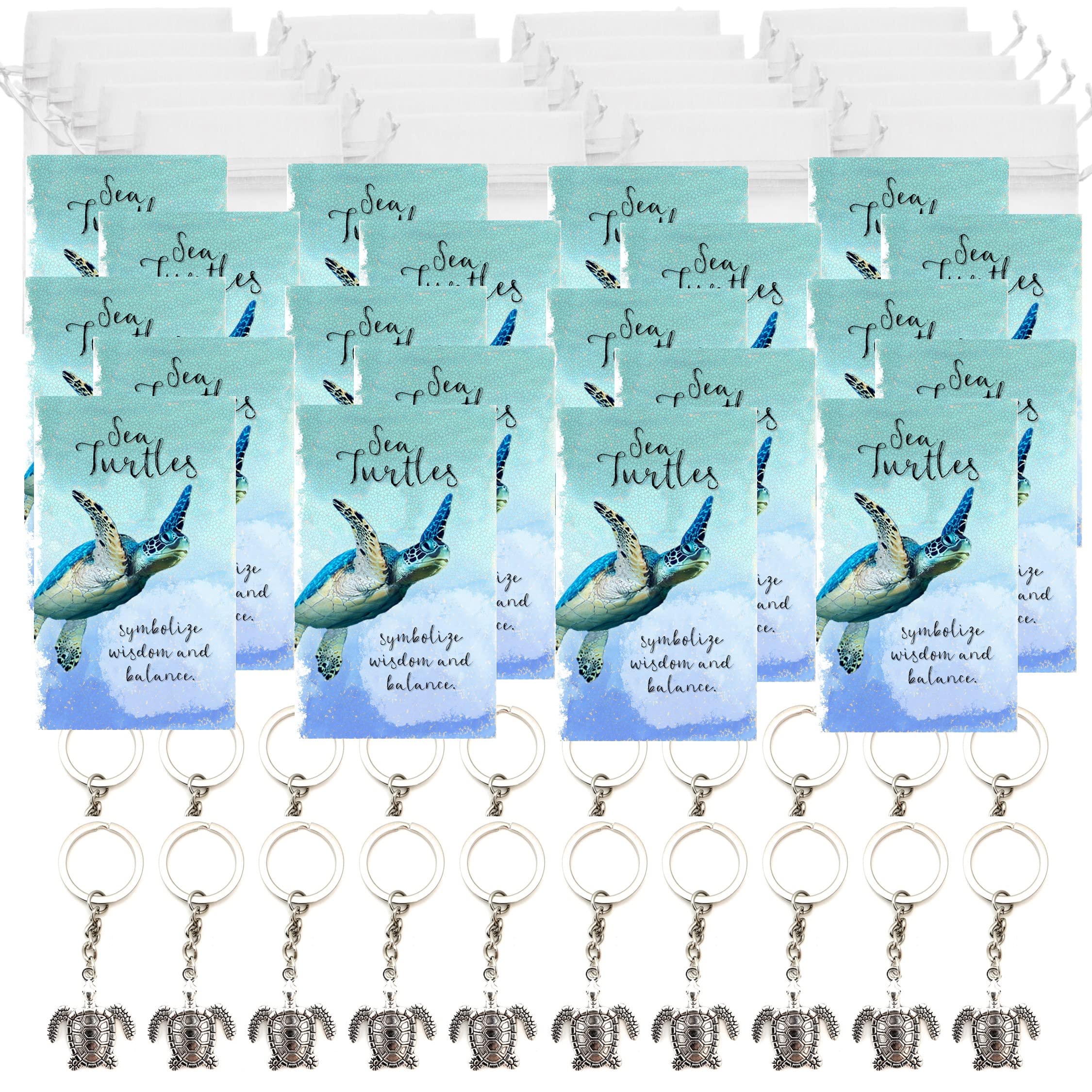 Smiling Wisdom - 20 Bulk Employee Staff Gifts - Mini Appreciation Greeting Cards and Turtle Keychain Gift Sets - 60 Pcs - Silver Sea Turtle|Office Supplies