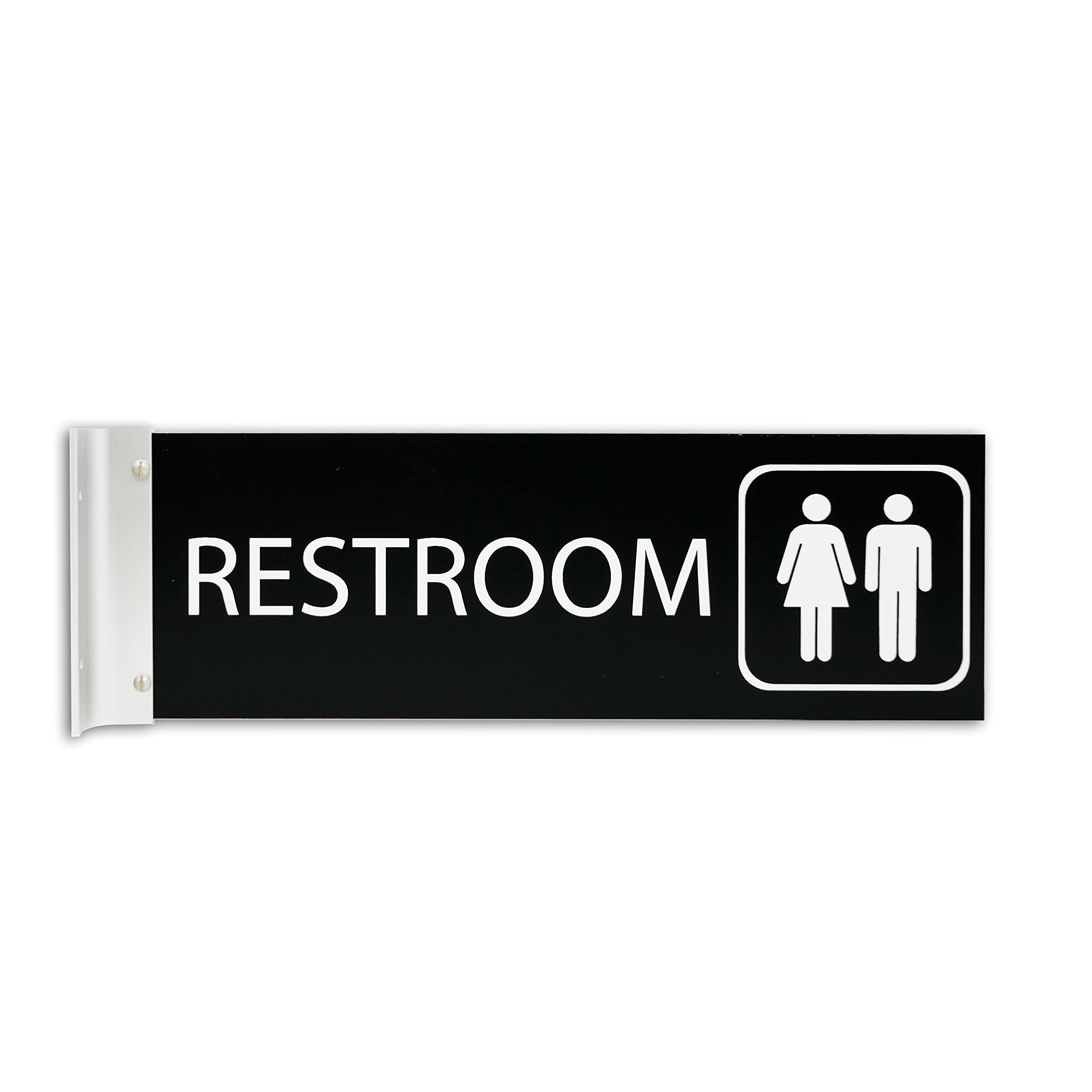 ALPHA DOG SIGNS Unisex Restroom Corridor Sign Black 4x12 Inch Double Sided - Projecting Hallway Bathroom Sign with Bracket - Indoor Outdoor|Office Supplies