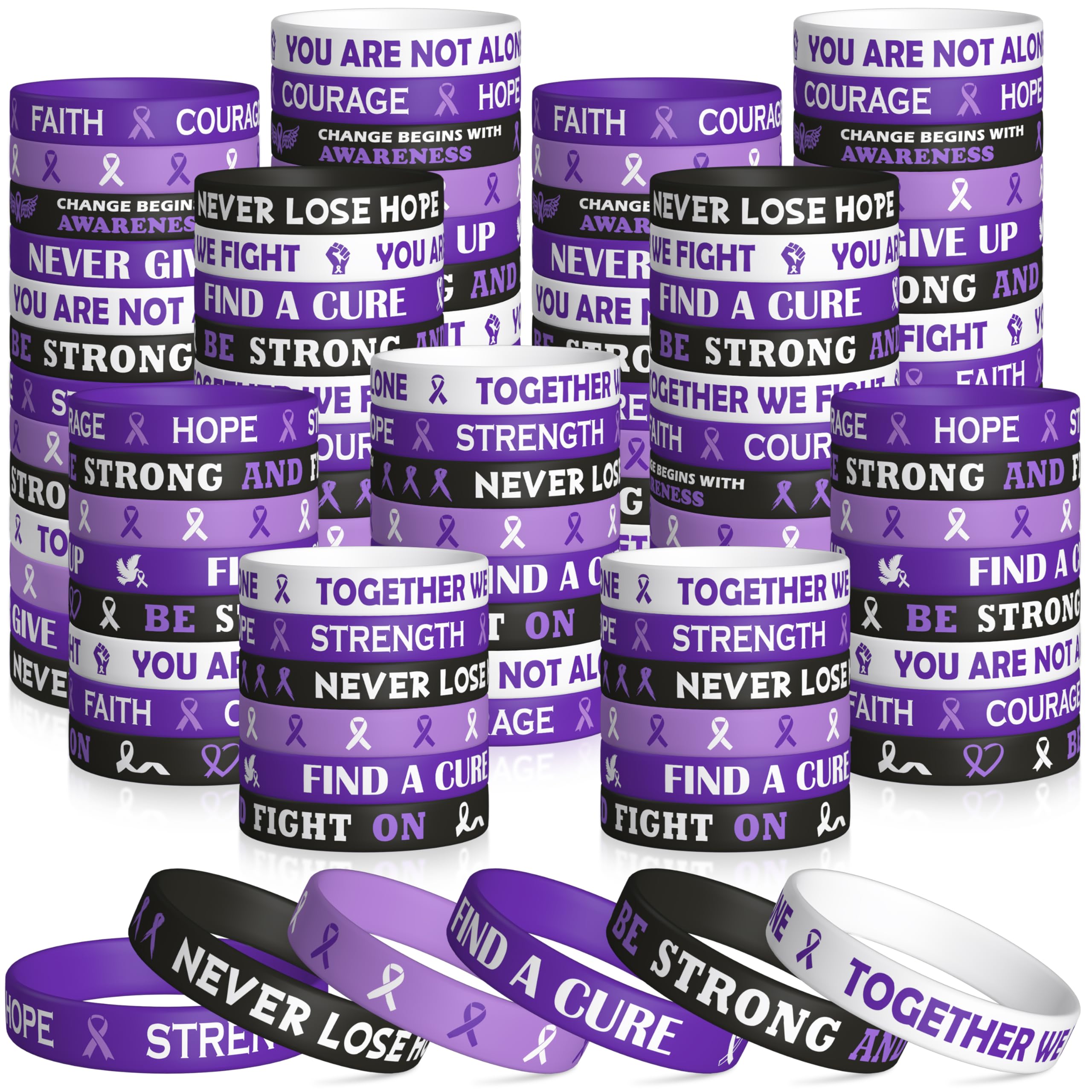 WATINC Purple Ribbon Awareness Silicone Bracelets Set, Hope Faith Stretch Wristband,Motivational Rubber Bracelet for Domestic Violence Animal Abuse|Office Supplies