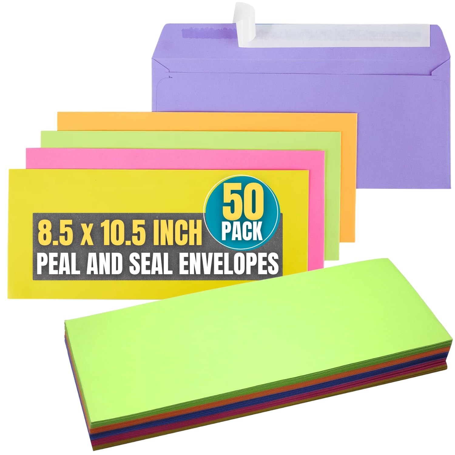 1InTheOffice EasyClose Neon Brights Color Envelopes, 10, Assorted, 4 1/8"H x 9 1/2"W, 50/Pack (Assorted Pastel)|Office Supplies