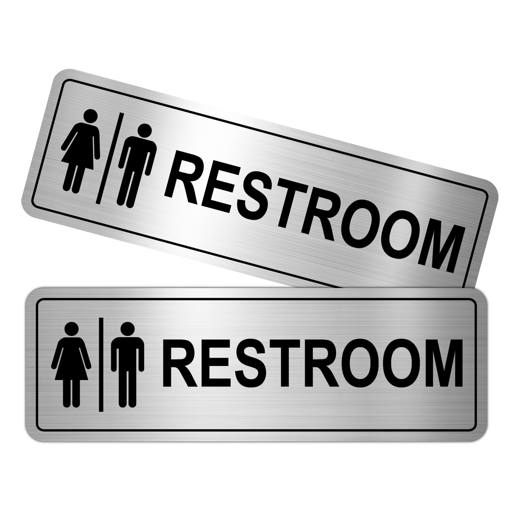 Restroom Sign - (2 Pack ) Metal Restroom Signs for Business with Strong Self-Adhesive, Bathroom Signs for Home Door or Wall, Ideal Unisex Restroom|Office Supplies