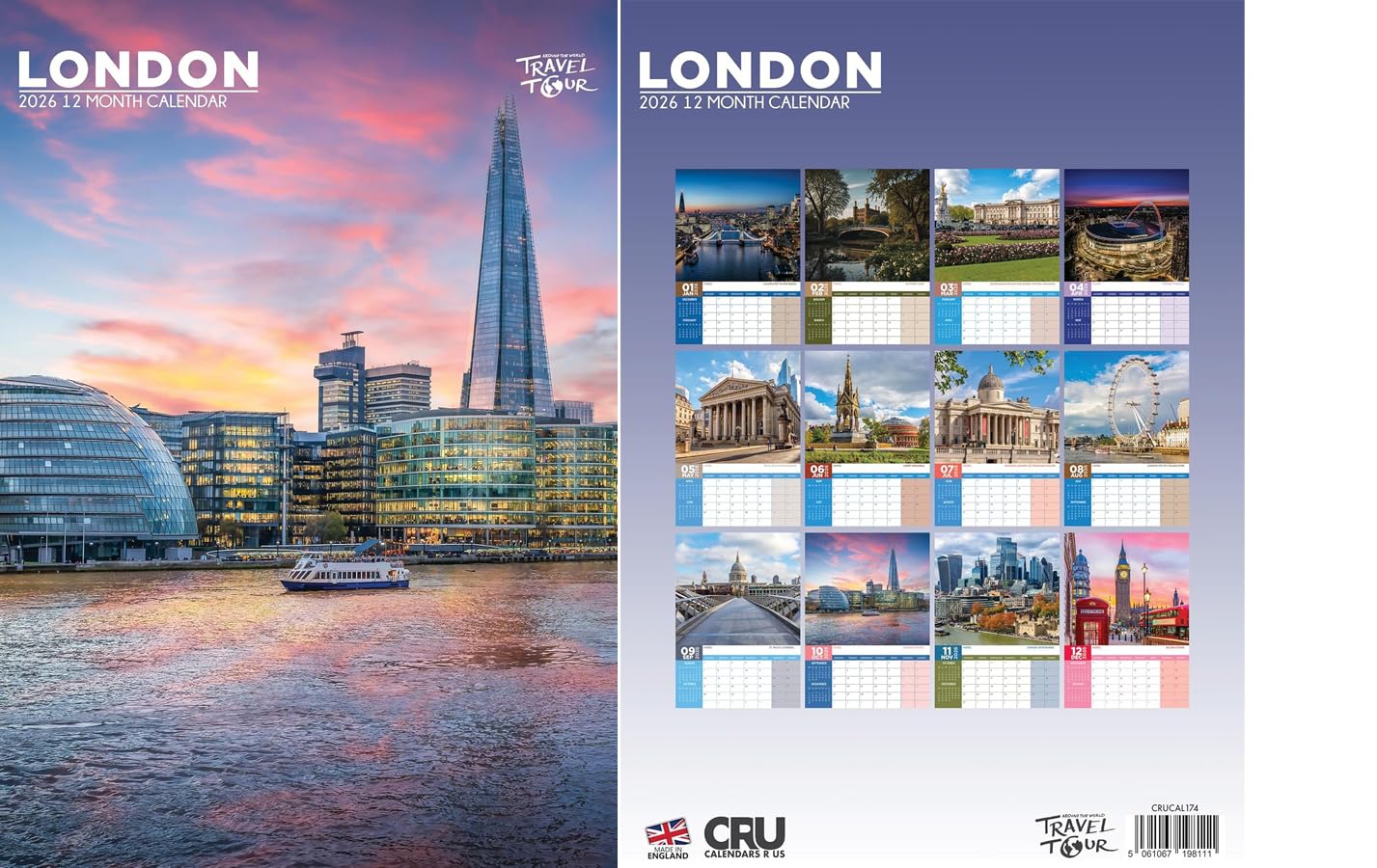 London 2026 Wall Calendar, A3 Size, 12-Month Travel Photography, Scenic Landmarks|Office Supplies