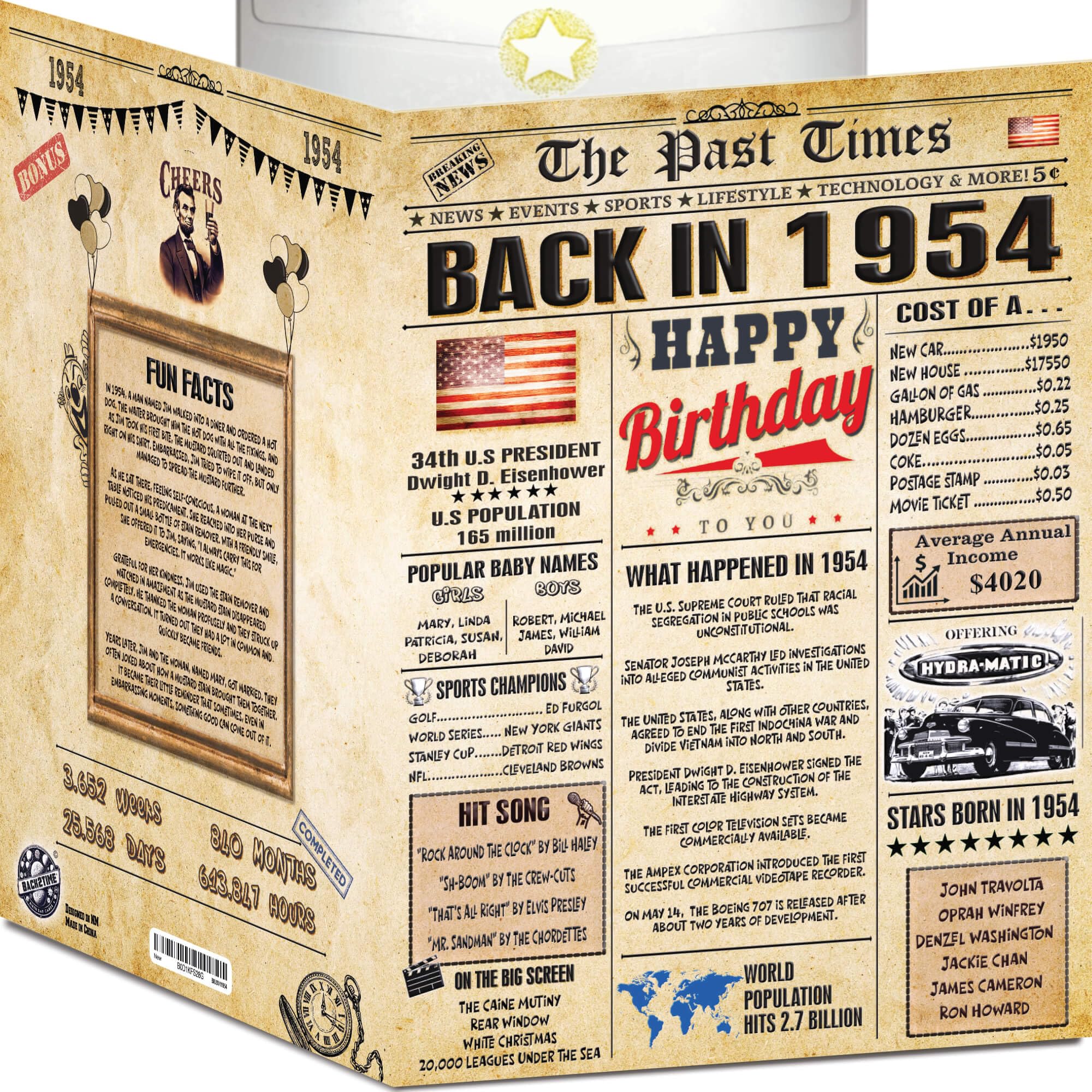 Back2Time 72nd Birthday Cards for Men & Women - Back In 1954 Newspaper (Bday Card + Envelope) Large HAPPY BIRTHDAY Decorations for Her Him Vintage|Office Supplies