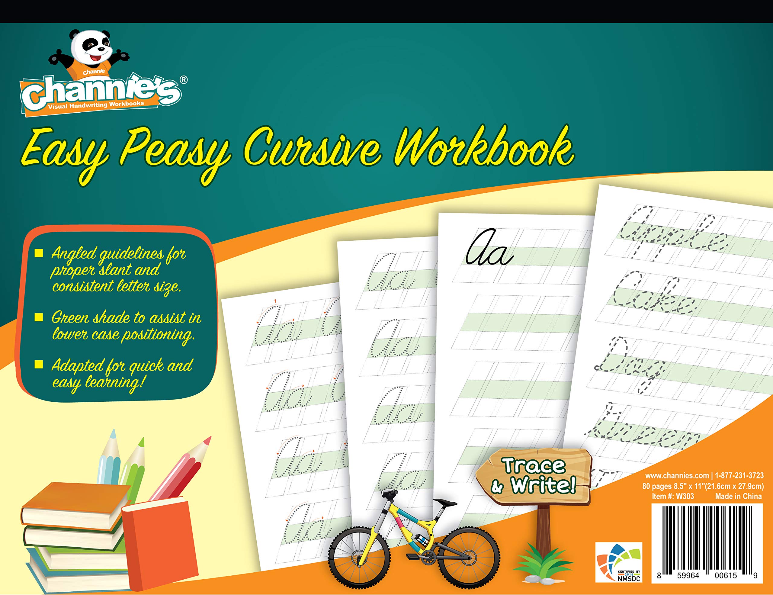 Channie’s Easy Peasy Cursive Handwriting Workbook for Kids, Tracing & Cursive Writing Practice Book, 80 Pages Front & Back, 40 Sheets, Grades 1st –|Office Supplies