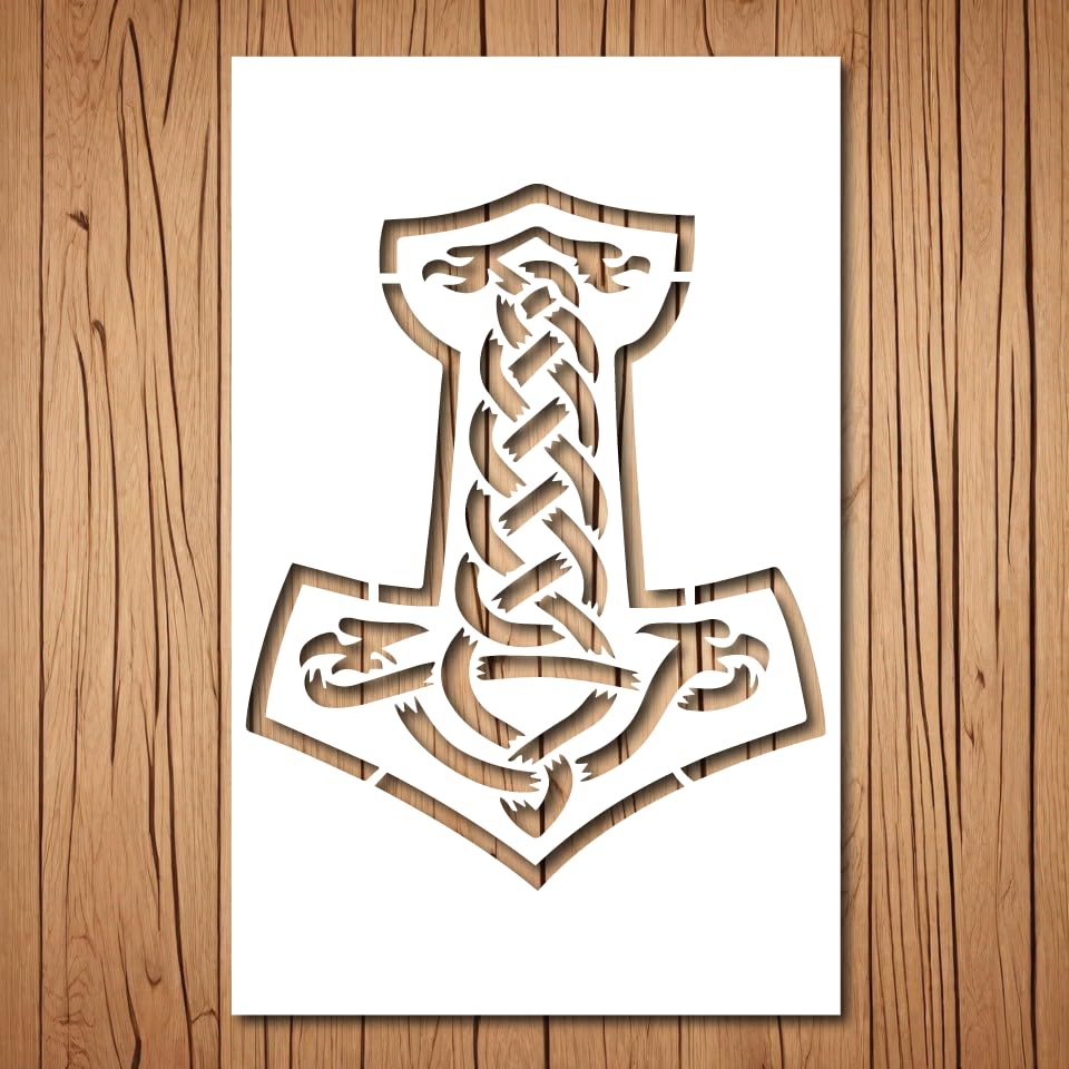 Generic Viking Mjolnir Stencil | Reusable Celtic Stencils for Painting on Wood, Glass, Wall, Rock, Walls, Canvas, Glassware, Spray Painting,|Office Supplies