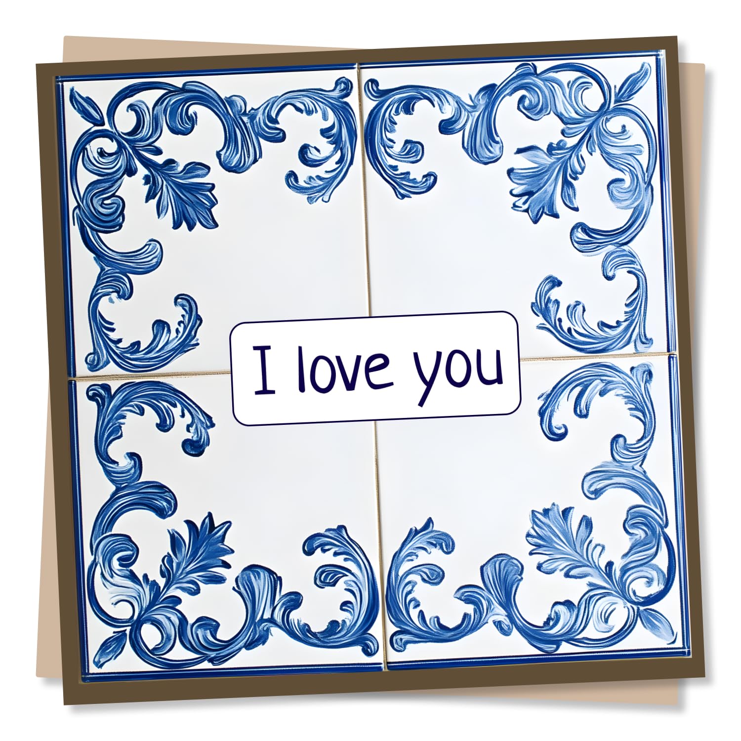 Beautiful and Simple Anniversary or Birthday Card For Partner - Tile Design - Delicate - I Love You - For Husband, Wife, Boyfriend, Girlfriend|Office Supplies