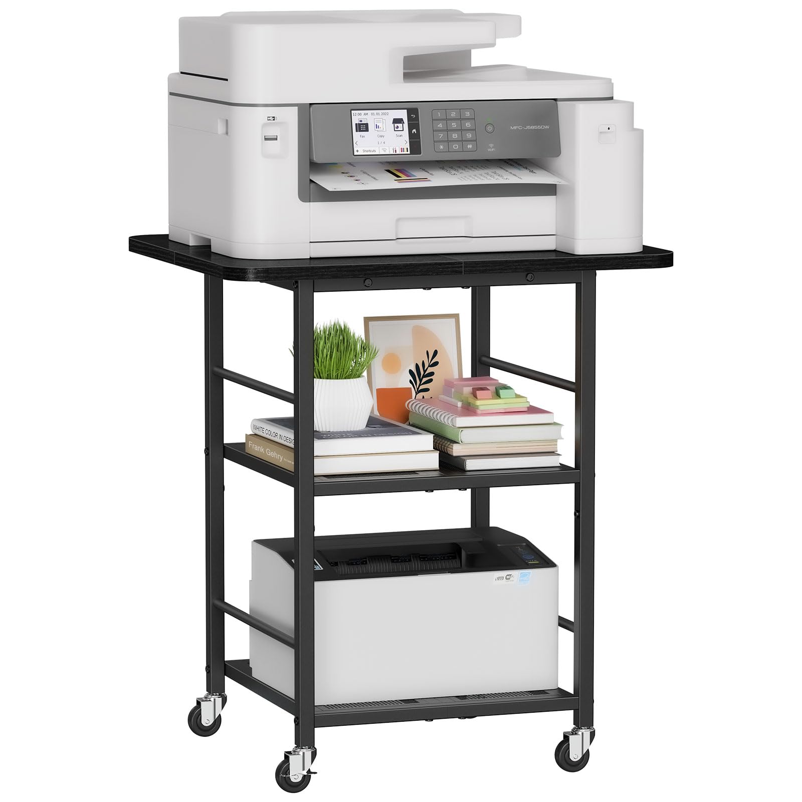 Snughome 3-Tier Printer Stand, 19.7" D×23.6" W×26.5" H Extra Large Printer Table with Storage Shelves, Rolling Cart with Lockable Wheels for Home|Office Supplies