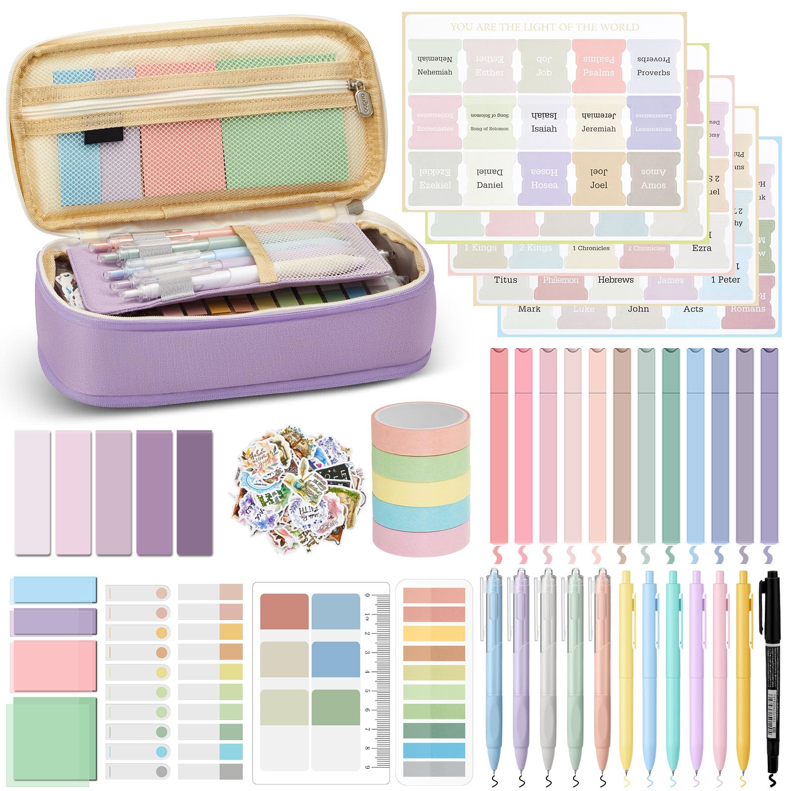 98 Pcs Bible Study Supplies, Bible Journaling Kit for Women, Aesthetic Study Kit with Pencil Case Book Annotation Aesthetic Highlighters Notes Gel|Office Supplies