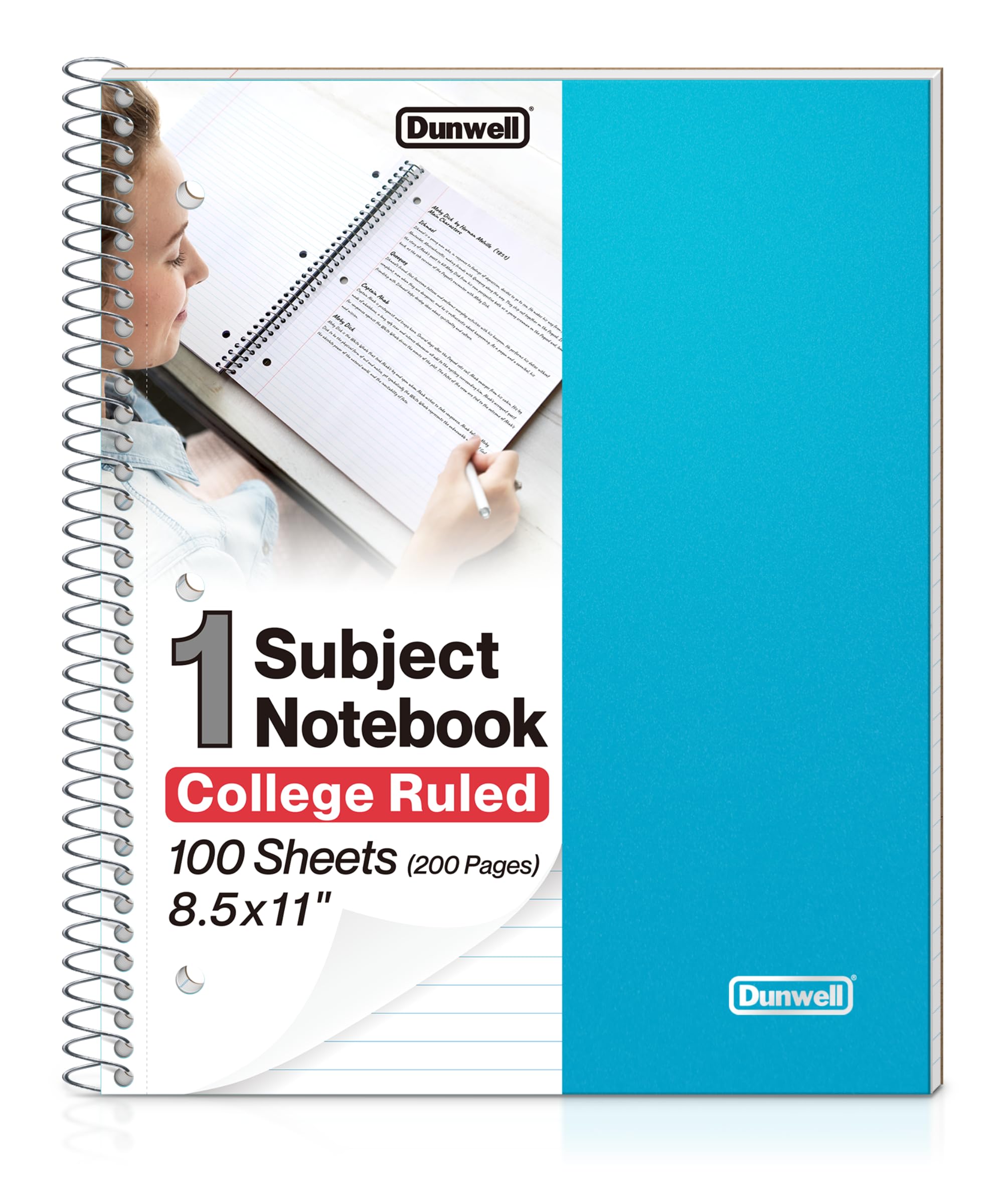 Dunwell 1-Subject Notebook College Ruled, (Blue) 100 Sheets (200 Pages), Perforated Paper, 3 Hole Punched, Spiral Notebook 8.5 x 11, Protective|Office Supplies