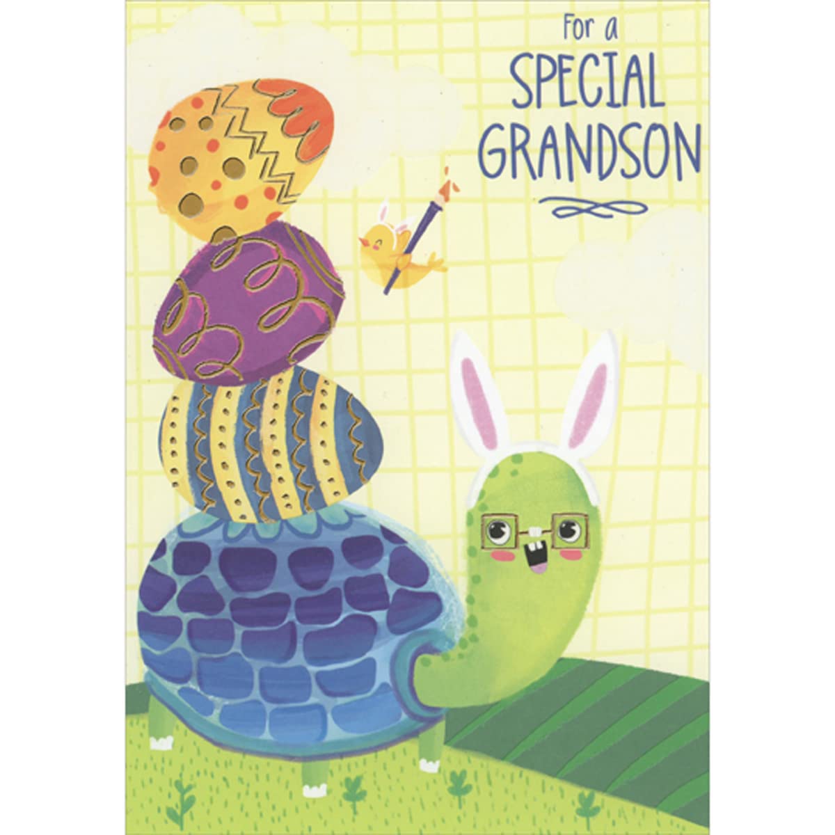 Designer Greetings Turtle Wearing Square Framed Glasses While Balancing 3 Eggs on Shell Juvenile Easter Card for Young Grandson|Office Supplies