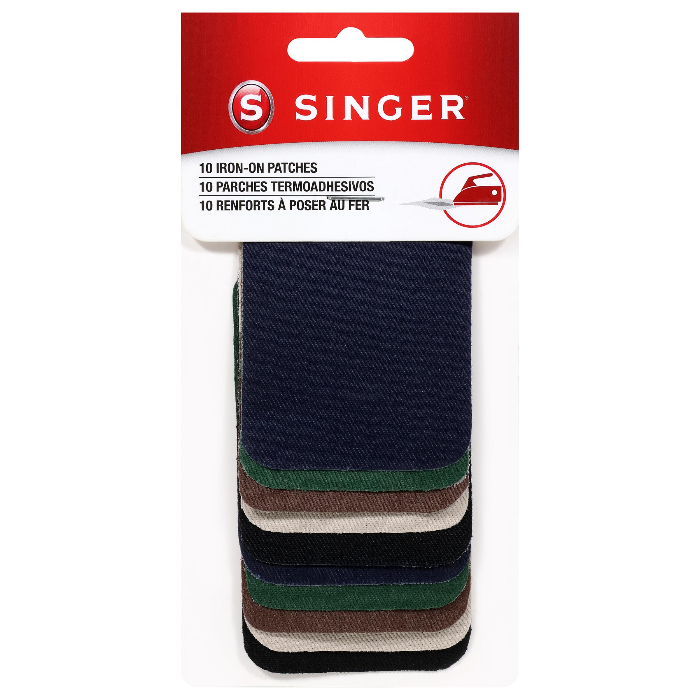 SINGER Iron-On Twill Patches, 2-Inch x 3-Inch (10-Count, Assorted Dark Colors)|Office Supplies