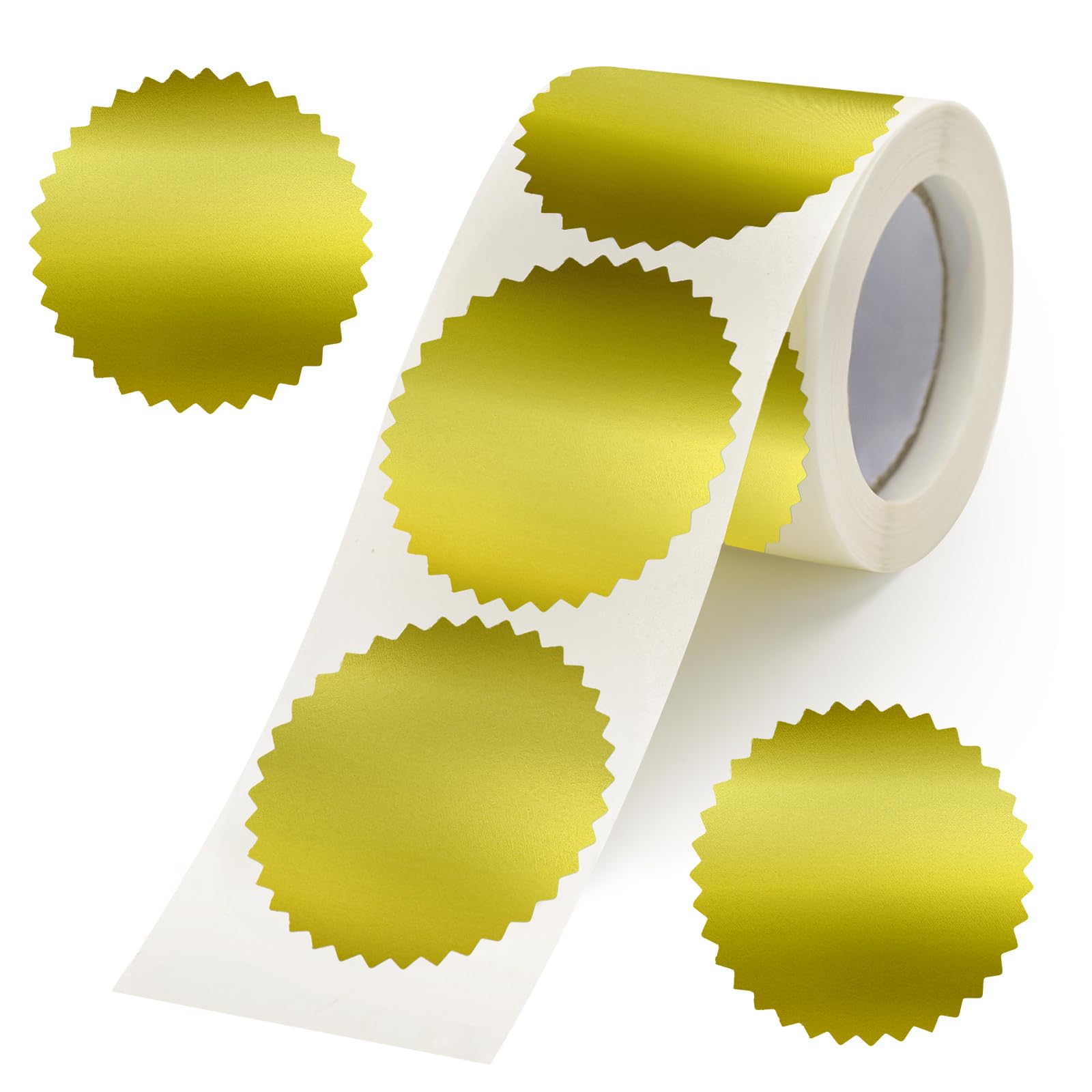 Anwyll Embossing Stickers 300Pcs 2'' Gold Foil Seals Stickers for Certificates Self Adhesive Envelope Seal Label Sticker with Serrated Edge Blank|Office Supplies