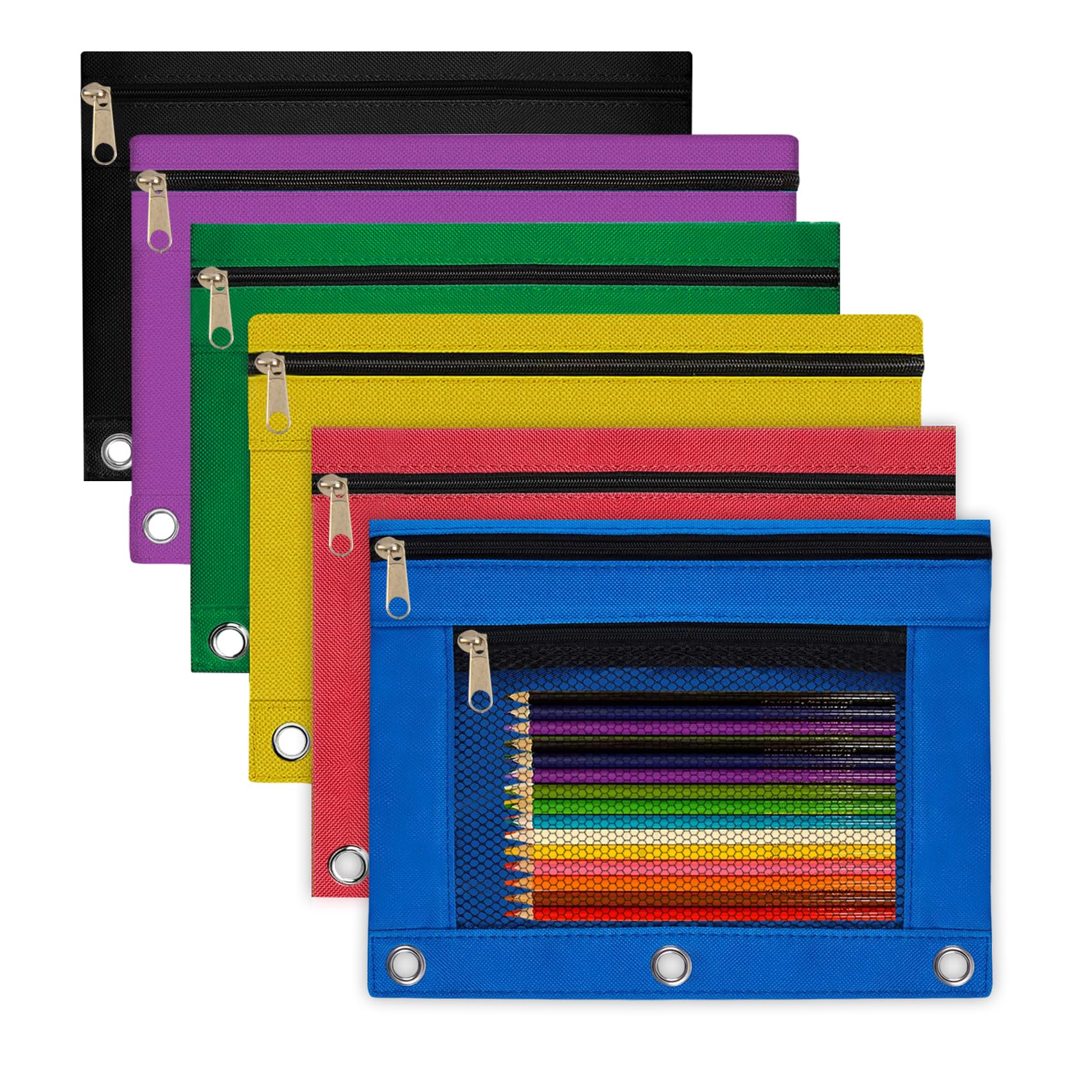 ysuwekslu Pencil Pouch for 3 Ring Binder 6 Pack Pencil Bags with Zipper Pencil Case for Binder Large Pencil Case Pouch 3 Ring with Clear Mesh Window|Office Supplies