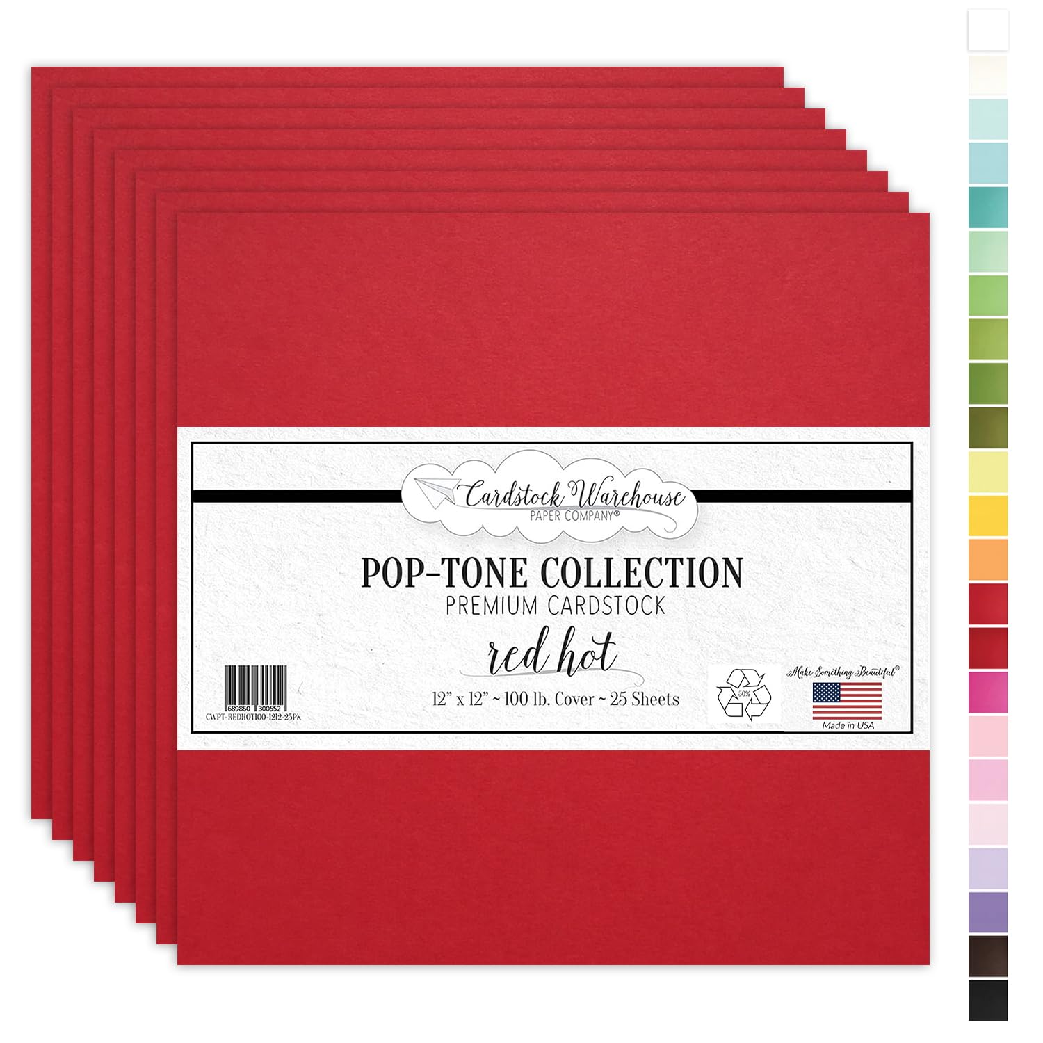Cardstock Warehouse Pop-Tone Red Hot Cardstock Paper - 25 Sheets, 12 x 12" - 100 lb / 270 GSM Premium Red Card Stock for Die-cutting, Crafts,|Office Supplies