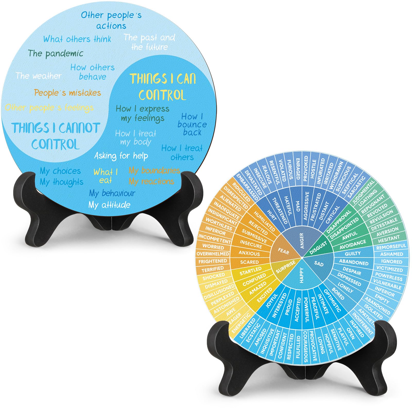2 Pcs Feelings Wheel Therapy Office Desk Decor Things I Can Control Double Sided Mental Health Emotions Chart with Stand Therapist Gifts Psychology|Office Supplies