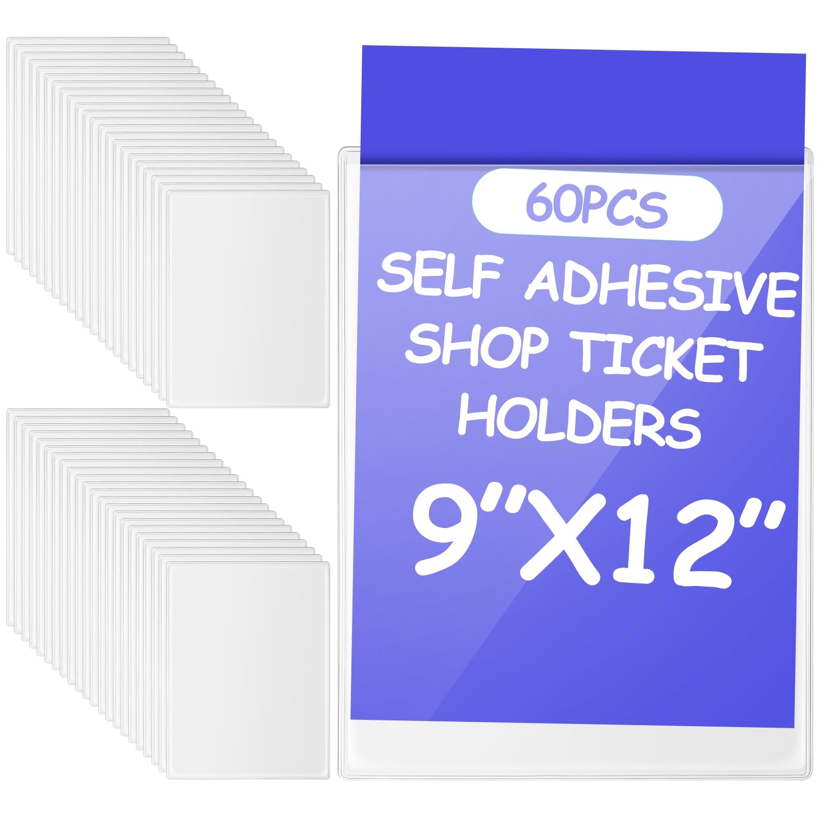Outus 60 Pcs Self Adhesive Shop Ticket Holders Clear Plastic Sleeves Adhesive Pockets Work Order Job Ticket Holders for Home Office Posting Signs (9 x|Office Supplies