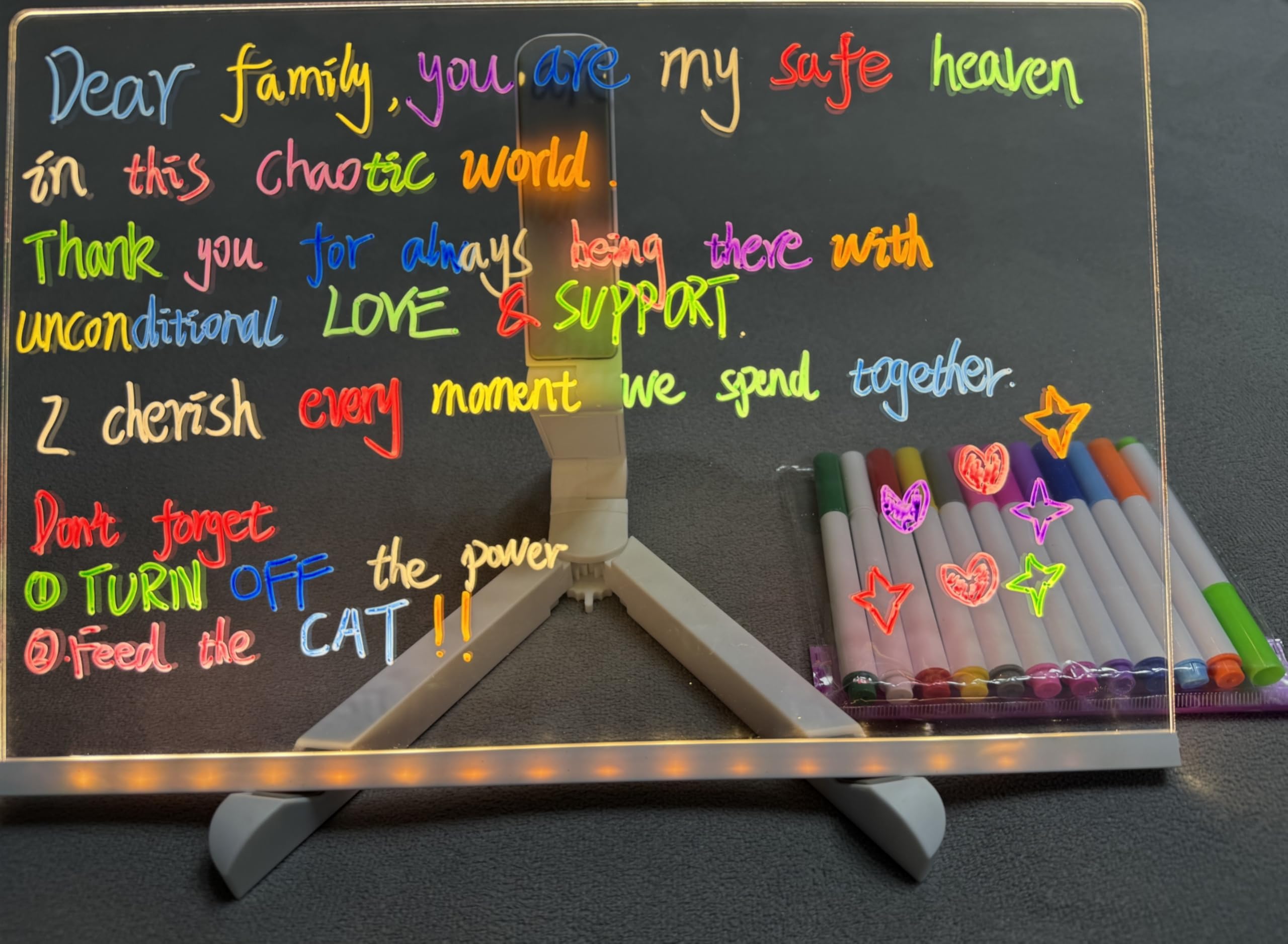 Led Note Board with 12 Colors,12X8in Acrylic Dry Erase Board with Light,Acrylic Message Board Light Up,Led Drawing Board with 12 Color Markers for|Office Supplies