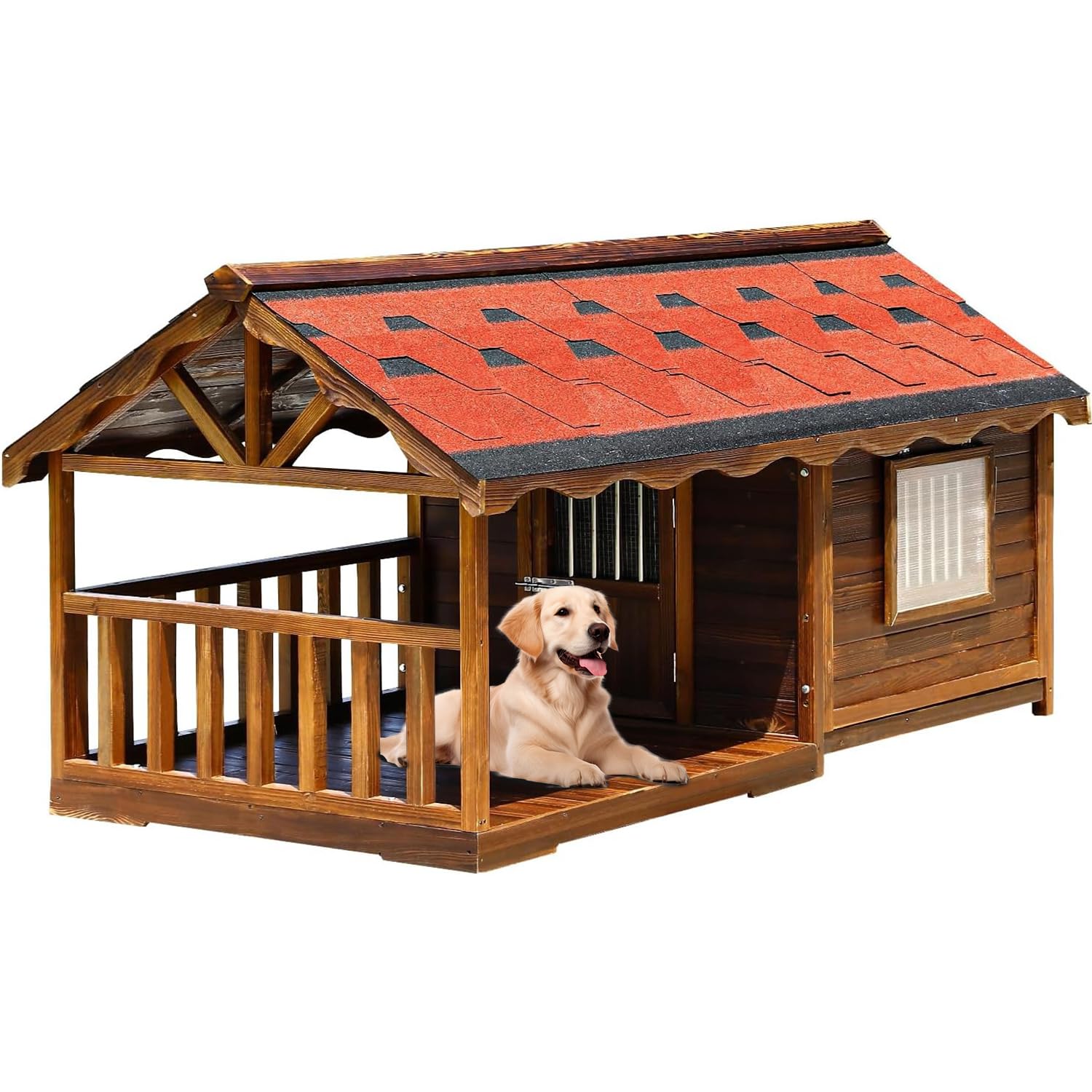 Dog House Outdoor Large Breed,Durable Pine Wooden Dog Kennel Outside with Adjust Window,Elevated Floor,Removable Roof, XL(98.43inch*51.18inch*|Pet Supplies