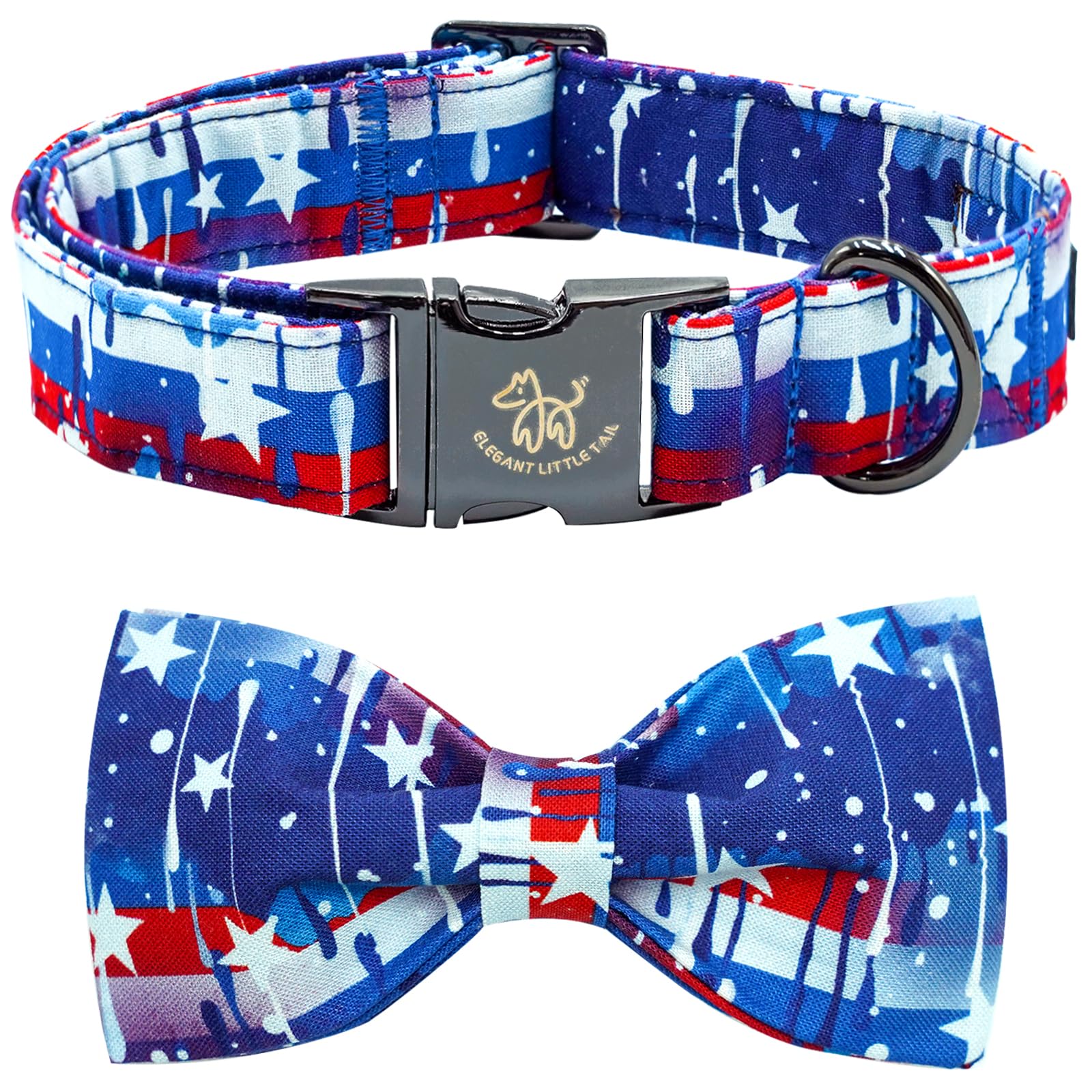 Independence Dog Collar, Patriotic Pet Collar with Bow Tie American 4th of July Holiday Pet Gift Cotton Soft Bowtie Dog Boy Girl Adjustable Collars|Pet Supplies