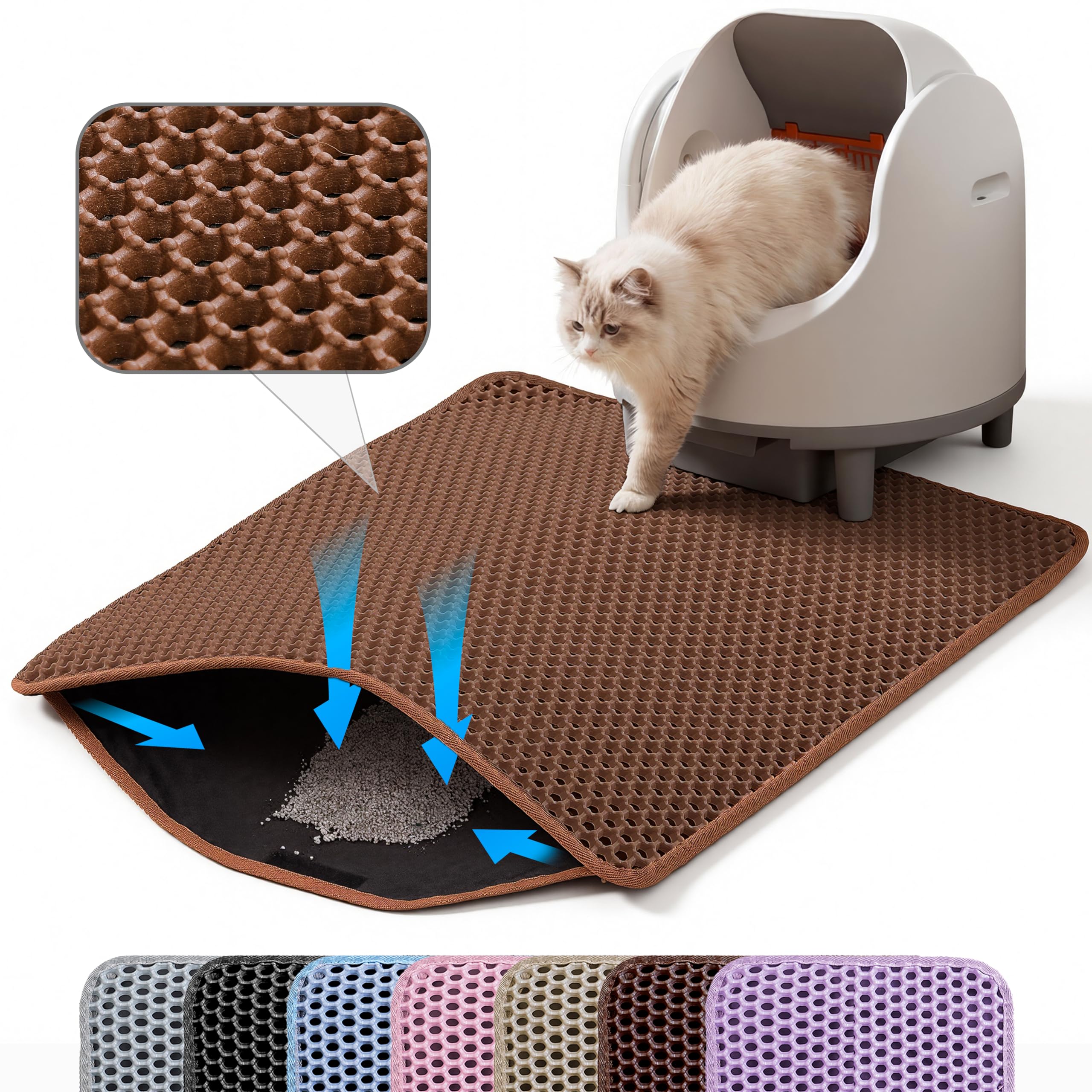 Petinstinct Extra Large Cat Litter Mat, 30x22 Inches Honeycomb Double Layer Cat Litter Trapping Mat, Non Slip Waterproof Urine Proof Large Kitty|Pet Supplies