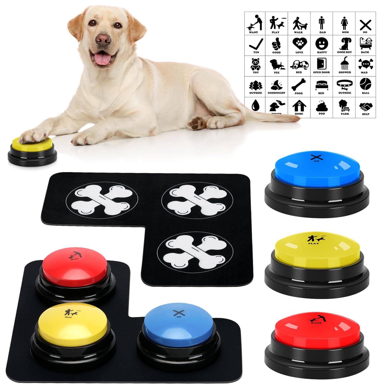 Dog Buttons for Communication Starter Pack 3 Dog Talking Button Set, 30s Voice Recording Speaking Button Pet Speech Training Buzzers with 30 Scene|Pet Supplies