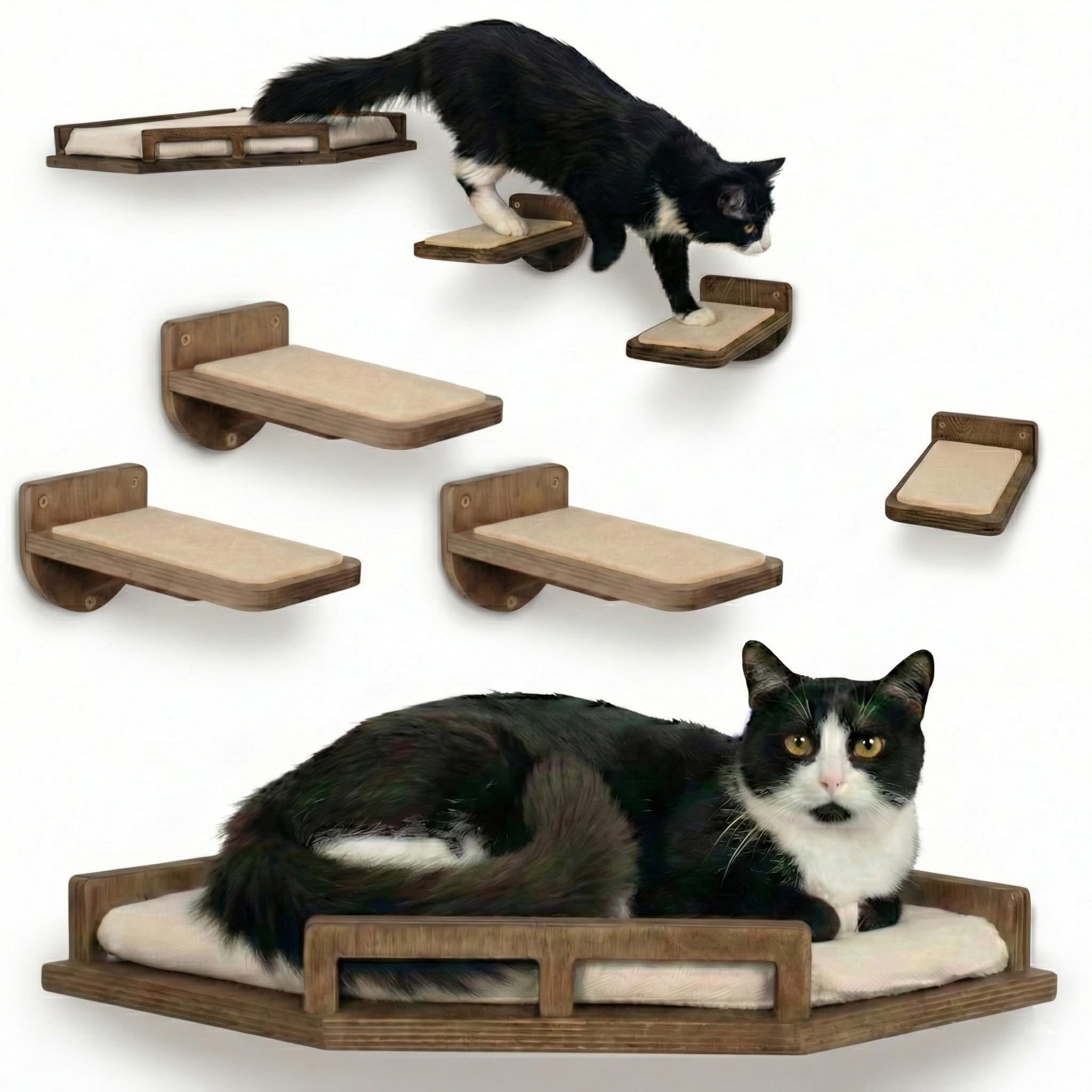 INICIO Cat Wall Shelves - Safe and Sturdy Cat Wall Furniture - Stylish Natural Wood Corner Shelf with 3 Steps for Cats up to 15lbs - Cushioned Perch|Pet Supplies