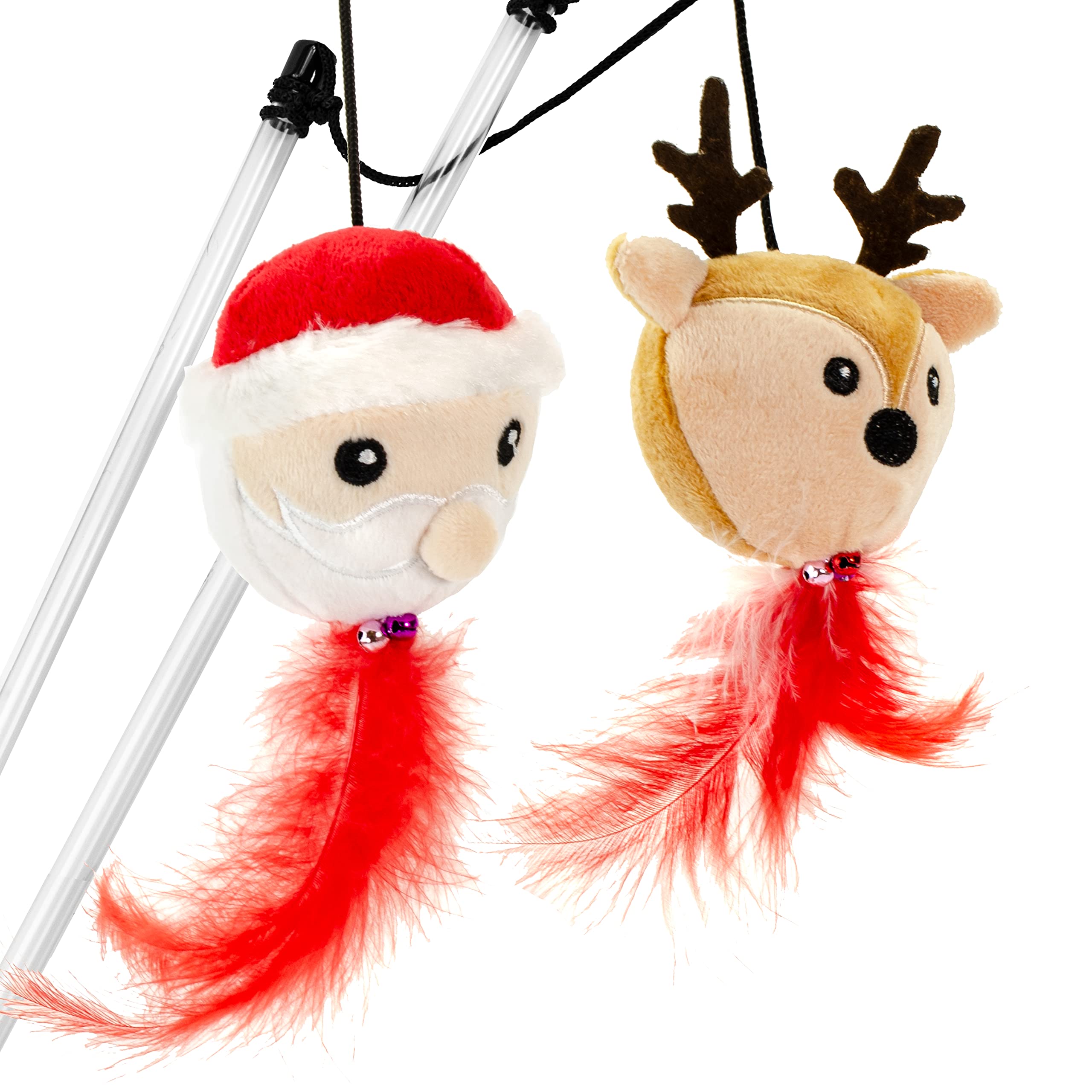 Giftable World Holiday Plush Pet Toy Fun for Christmas Designs Cat Play Toy (Reindeer & Santa Wand)|Pet Supplies