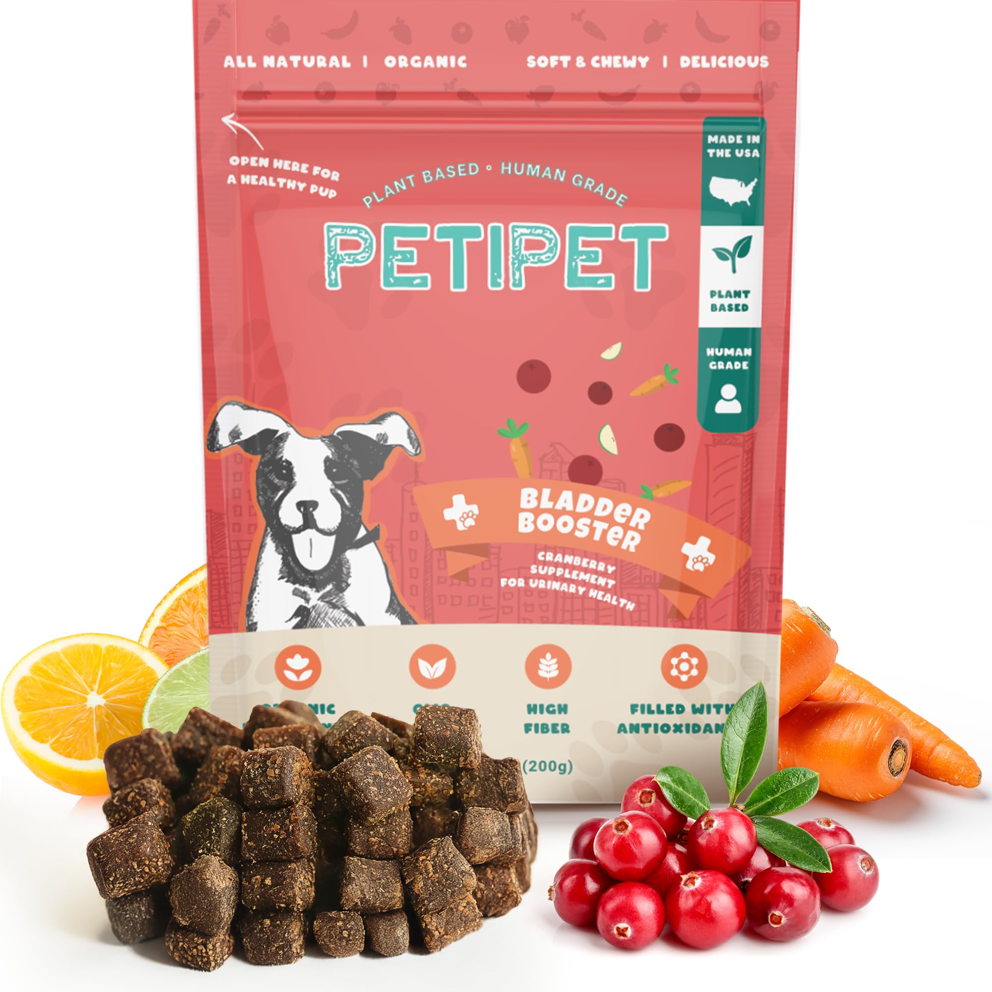 Petipet Bladder Booster Cranberry Supplement for Dogs - Helps Support Urinary Tract, Bladder, Kidney Health - Dog UTI Treatment - Vegan Dog Treats|Pet Supplies